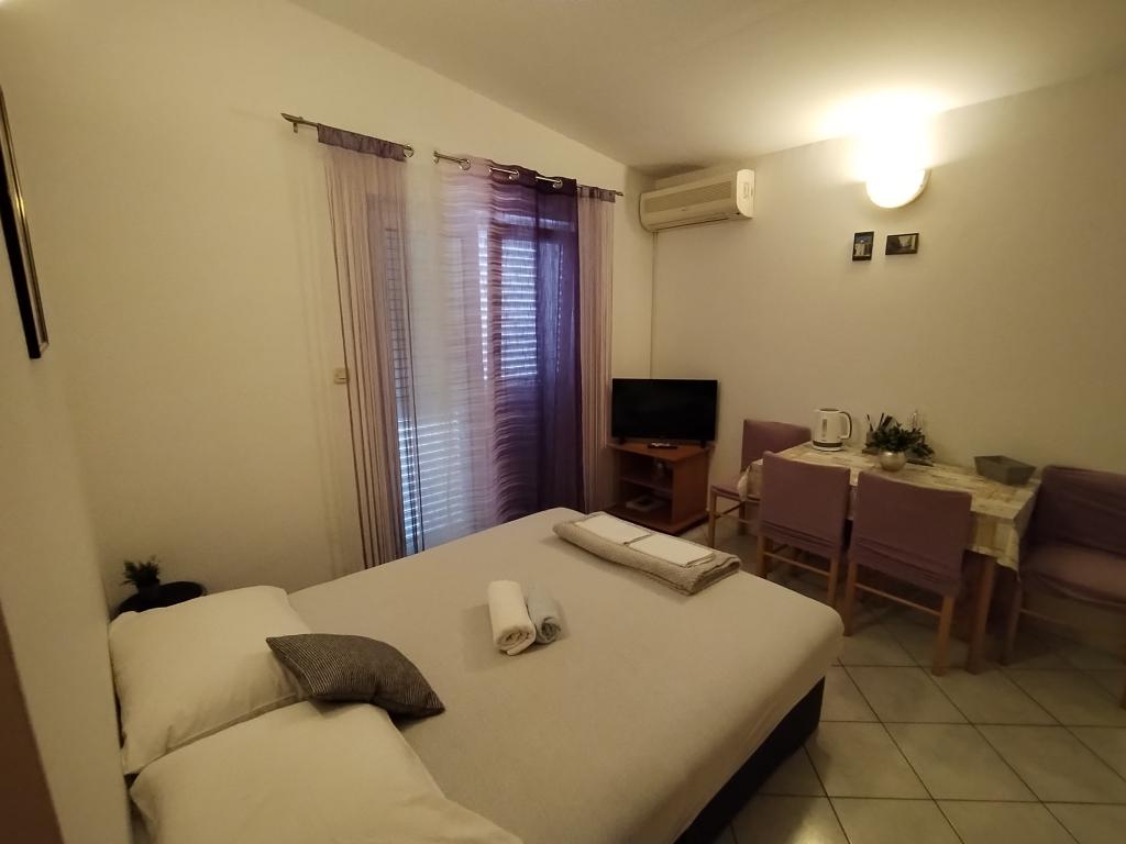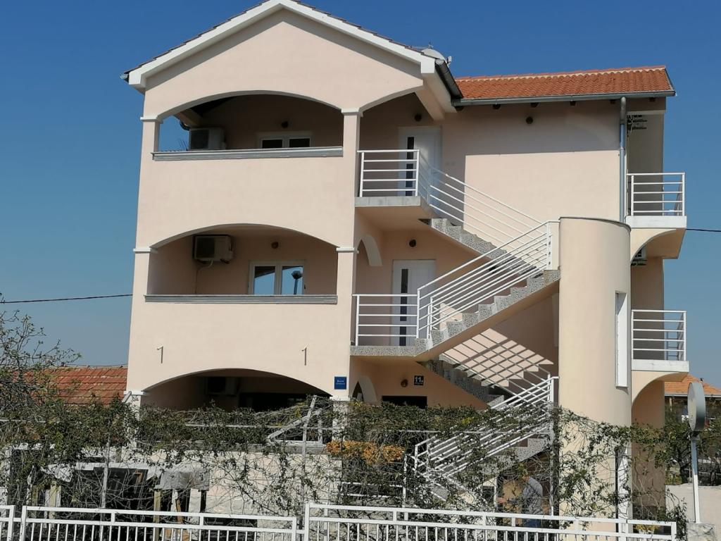 Apartamenty Marko to w pełni wyposażone apartamenty dla czterech osób. Apartamenty składają się z sypialni z łóżkiem małżeńskim i szafą, łazienki z prysznicem, pokoju dziennego z łóżkiem dla dwóch osób i TV. Kuchnia wyposażona jest we wszystkie naczynia, kuchenkę mikrofalową, czajnik, lodówkę. Żelazko i deska do prasowania. Mieszkanie posiada klimatyzację, Wi-Fi, a każdy gość ma własne miejsce parkingowe. Do plaży jest około 900 m. Z jednej strony jest piękne jezioro Vrana, z drugiej morze. Sklep znajduje się 10m od apartamentu. Wizyta w wodospadach Krka, wycieczka do Kornati lub wizyta w Zadarze i organach morskich i wiele więcej sprawią, że Twój pobyt będzie niezapomniany. Gospodarz ma swoje wino, które każdy gość otrzymuje na powitanie. W obiekcie znajduje się również grill.