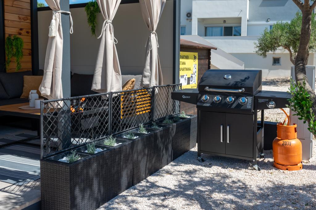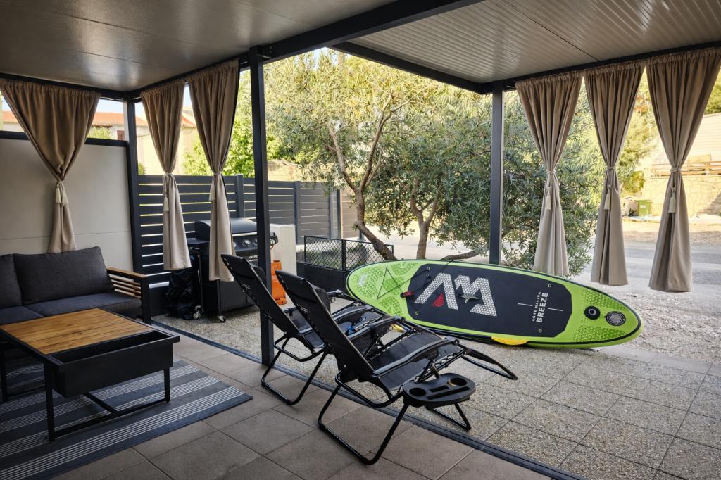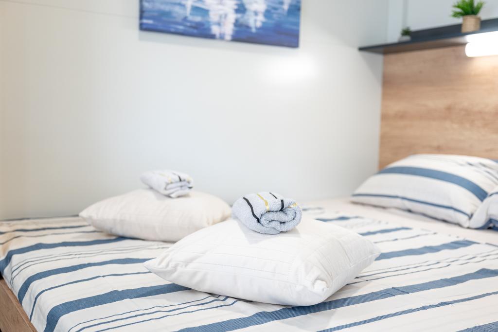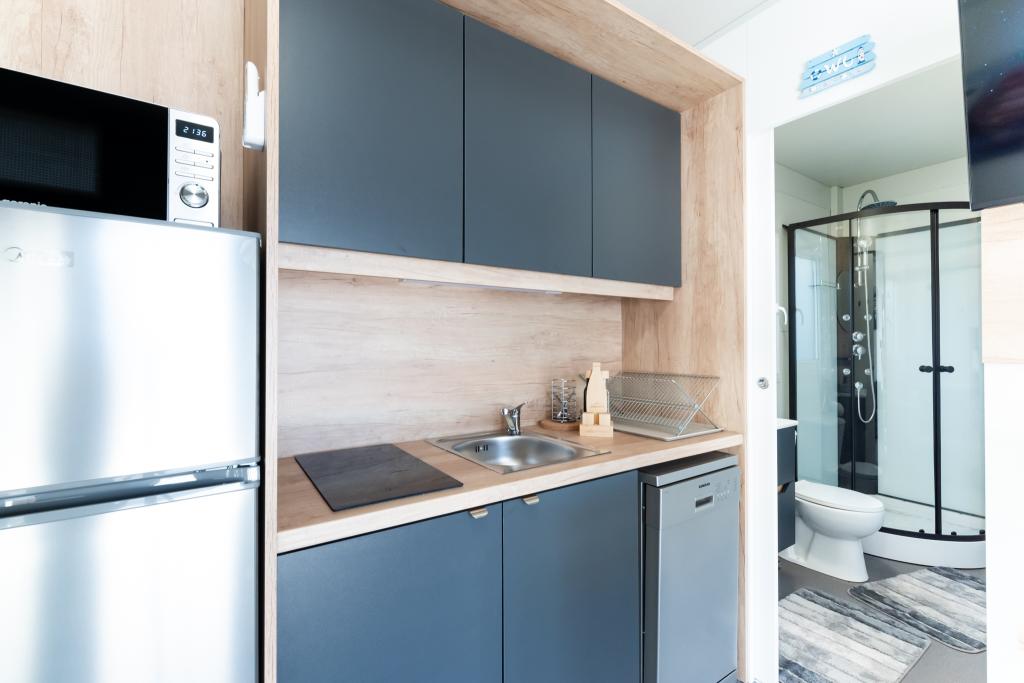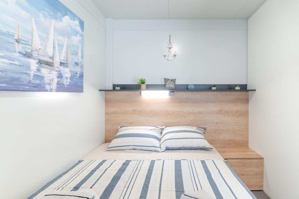Odkryj idealne wakacje nad morzem w naszych uroczych domkach mobilnych, położonych zaledwie 70 metrów od plaży Porat w spokojnej miejscowości Drage! Oferujemy dwa domki, z których każdy może pomieścić do 4 osób dorosłych i 1 dziecko. Domki posiadają dwie sypialnie. Jedna z nich wyposażona jest w łóżko podwójne o wymiarach 160x200, a druga w łóżko podwójne o wymiarach 140x200. Dodatkowo, rozkładana sofa może pomieścić dziecko do 5 lat. Każdy pokój wyposażony jest w wygodne łóżka i pościel, zapewniając zasłużony wypoczynek. Salon wyposażony jest w nowoczesne meble i telewizor, idealny do wieczornego relaksu. Kuchnia jest w pełni wyposażona we wszystkie niezbędne sprzęty, w tym lodówkę, kuchenkę, ekspres do kawy, czajnik i kuchenkę mikrofalową. Ciesz się poranną kawą lub wieczornym drinkiem na przestronnym tarasie o powierzchni 24 m²! Wszelkie zapytania prosimy kierować wyłącznie za pośrednictwem formularza kontaktowego!