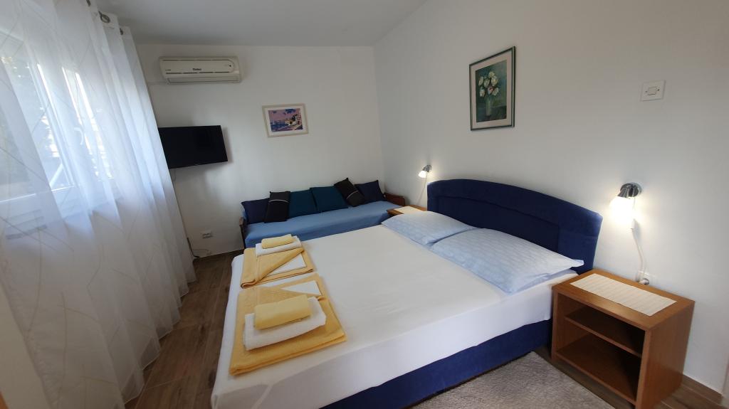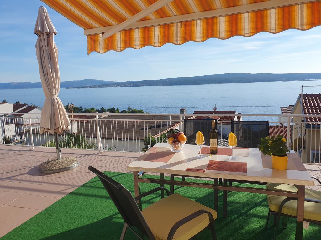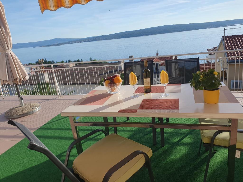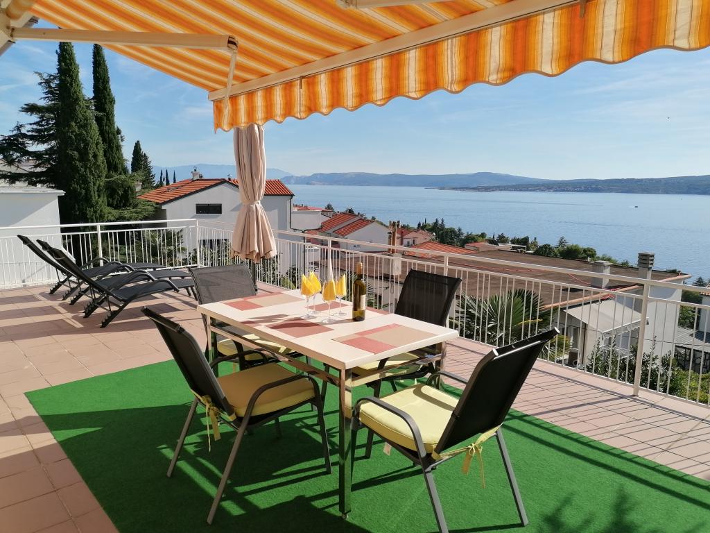 Dom rodzinny DANICA w wiosce Dramalj składa się z 3 oddzielnych apartamentów na wynajem (każdy na jednym piętrze), z podwórkiem, ogrodem i prywatnym parkingiem obok domu. Obiekt położony jest w spokojnej uliczce, 5 min. iść nad morze. Najbliższym miastem jest Crikvenica, oddalona o 3 km. Właściciel/gospodarz mieszka w niekomercyjnej części domu na parterze. Wynajem jest naszą rodzinną działalnością działającą od 1969 roku. Do dziś nasz obiekt gościł tysiące zadowolonych gości, którzy chętnie do nas wracają. Dzisiaj gospodarzami są małżeństwo Zlatka i Vladimir Pavković. Postaramy się, abyś czuł się u nas komfortowo. Zapewniamy naszym gościom całkowitą prywatność. Apartament A1 na parterze (2+1) posiada zadaszony taras z widokiem na morze i ogród śródziemnomorski. Apartament A2 (3+2) na 1 piętrze posiada 2 tarasy i balkon z widokiem na morze. Apartament A3 (3+2) na 2. piętrze posiada duży taras z widokiem na wyspę Krk, od Rijeki na zachodzie aż po odległe góry Velebit na południowym wschodzie. Apartamenty są klimatyzowane. Klimatyzacja jest wliczona w cenę.