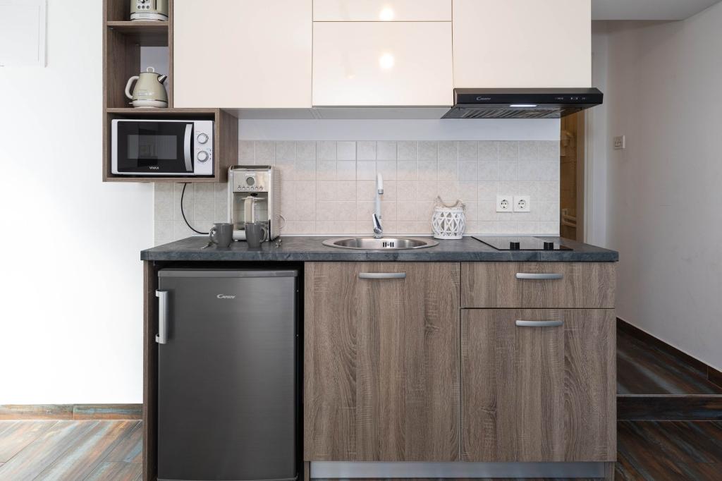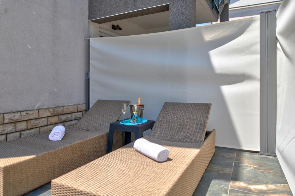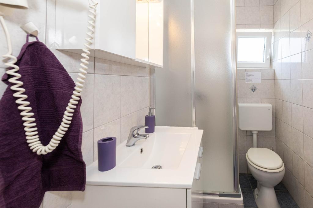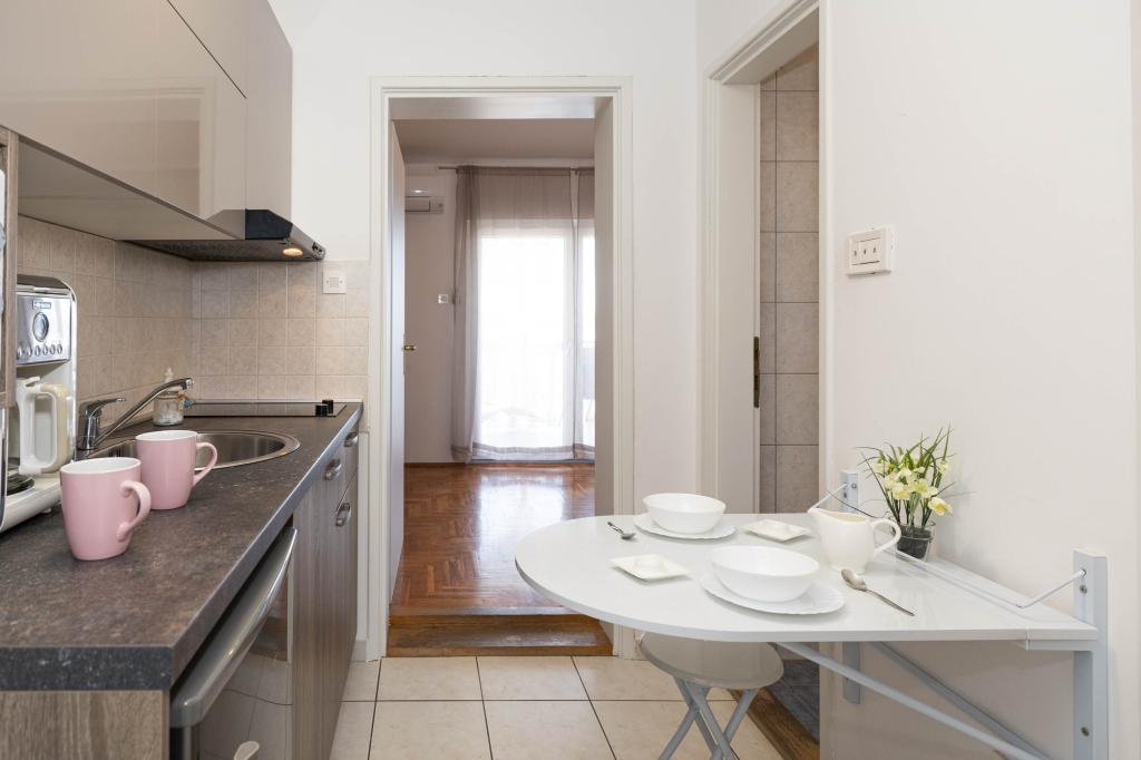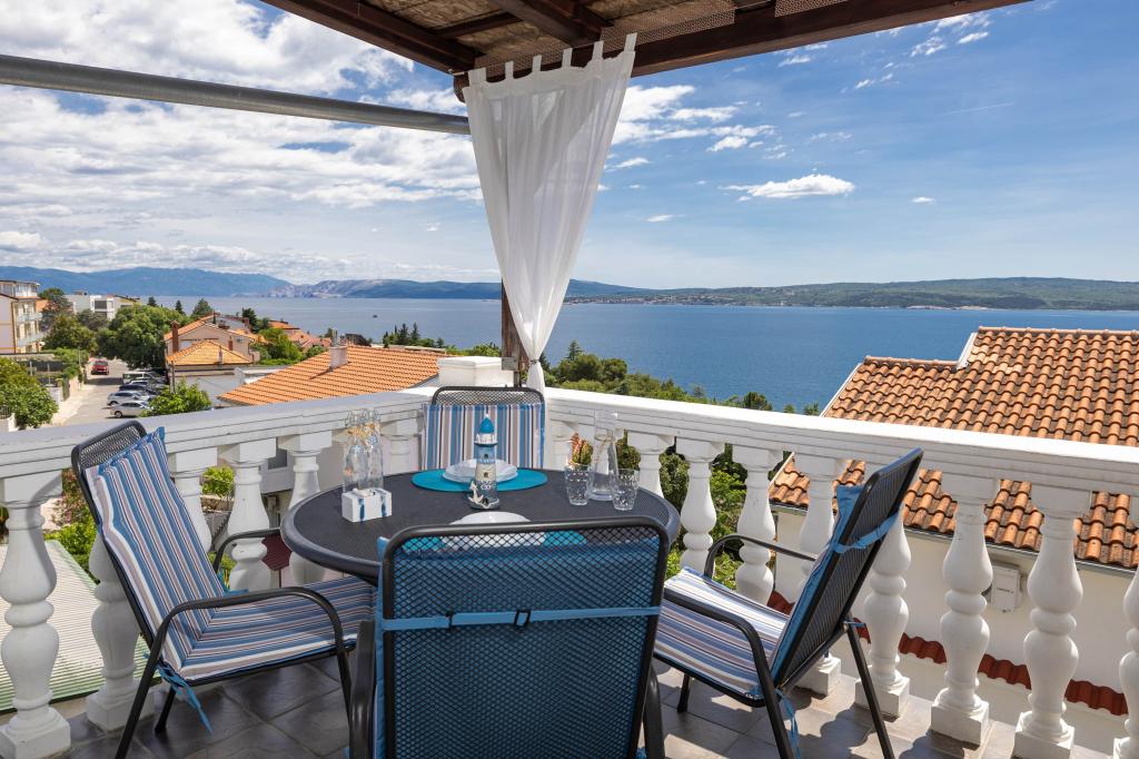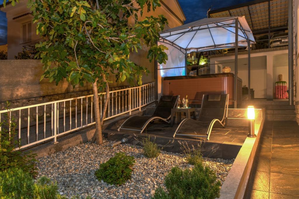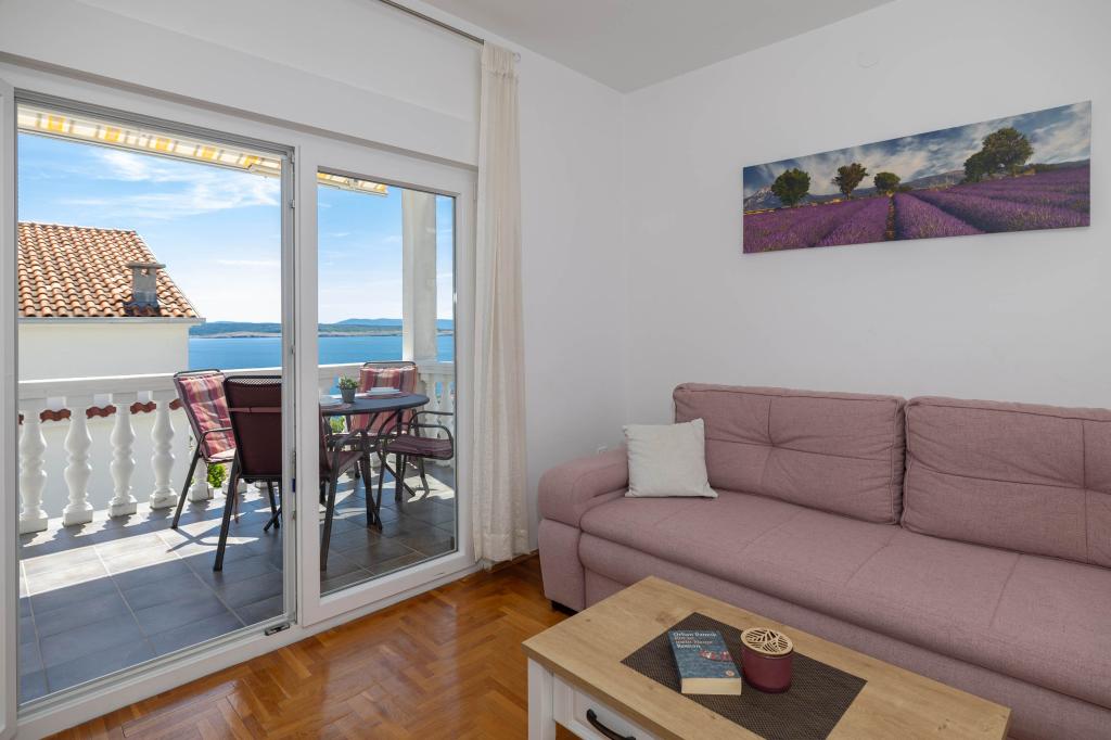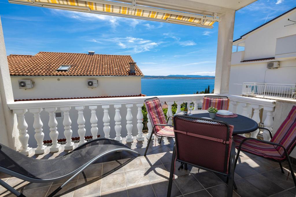 Nasz obiekt położony jest w drugim rzędzie od morza, co sprawia, że jest to idealne miejsce na relaksujący letni wypoczynek. Dom posiada sześć nowocześnie urządzonych apartamentów z widokiem na morze, wyposażonych tak, aby zapewnić przyjemny pobyt. Wszystkie apartamenty posiadają wyposażoną kuchnię z czajnikiem, ekspresem do kawy, tosterem i kuchenką mikrofalową. Łazienki wyposażone są w prysznic, toaletę i suszarkę do włosów. Na dziedzińcu znajdują się liczne udogodnienia umożliwiające relaks i rozrywkę. Do dyspozycji gości jest basen o wymiarach 7 x 3,5 m z leżakami, wanną z hydromasażem, prysznicem i altaną z grillem. Grill wyposażony jest w zlew i wszystkie niezbędne przybory kuchenne. W altanie znajduje się duży stół z dwiema ławkami, idealny na spotkania w większym gronie. W zadaszonej części podwórka znajduje się stół bilardowy, rzutki, gry planszowe i mała biblioteczka z książkami. Przed domem znajduje się zadaszony parking, na każdy apartament przypada jedno miejsce parkingowe. Apartamenty są rozmieszczone w następujący sposób: A1 i A2 na parterze, A3 na pierwszym piętrze, A5 na drugim piętrze oraz A7 i A8 na trzecim piętrze. Powitanie!!!