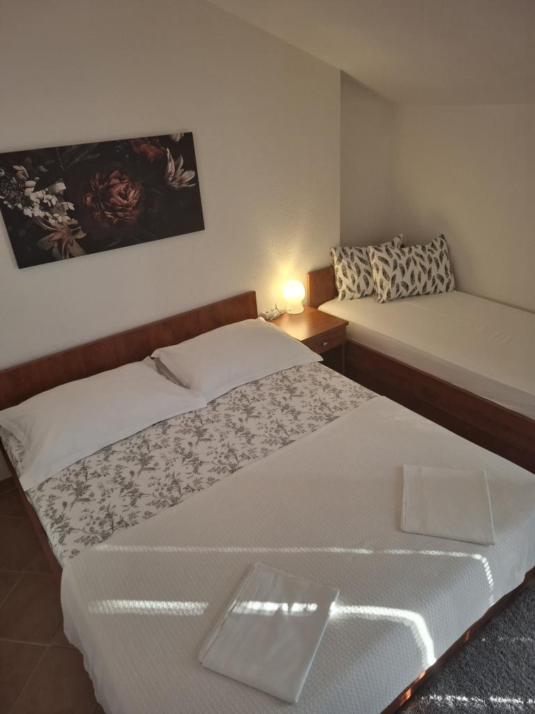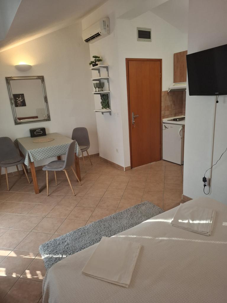 Rodzina z 16 letnim synem. Pobyt 11 dni na przełomie czerwiec - lipiec 2016. Apartament z pięknym widokiem na morze i góry. Studio+1 z klimatyzacją, czyste, pachnące, zadbane i dobrze wyposażone w nowe sprzęty. Możliwość korzystania z dużego murowanego grlia. Właściciele bardzo sympatyczni i uprzejmi. Zawsze służyli pomocą. Miejscowość dla ludzi ceniących spokój. Dobra baza na wyjazdy i zwiedzanie pobliskich miejscowości. Do wyboru dwie plaże żwirowo -kamienne. Atrakcją są skałki i groty znajdujące się w morzu. W pobliżu mały port dla jachtów i motorówek, kilka sklepików, restauracji. Wakacje uważamy za bardzo udane. Goran, pozdrawiamy Ciebie i Twoją rodzinę.