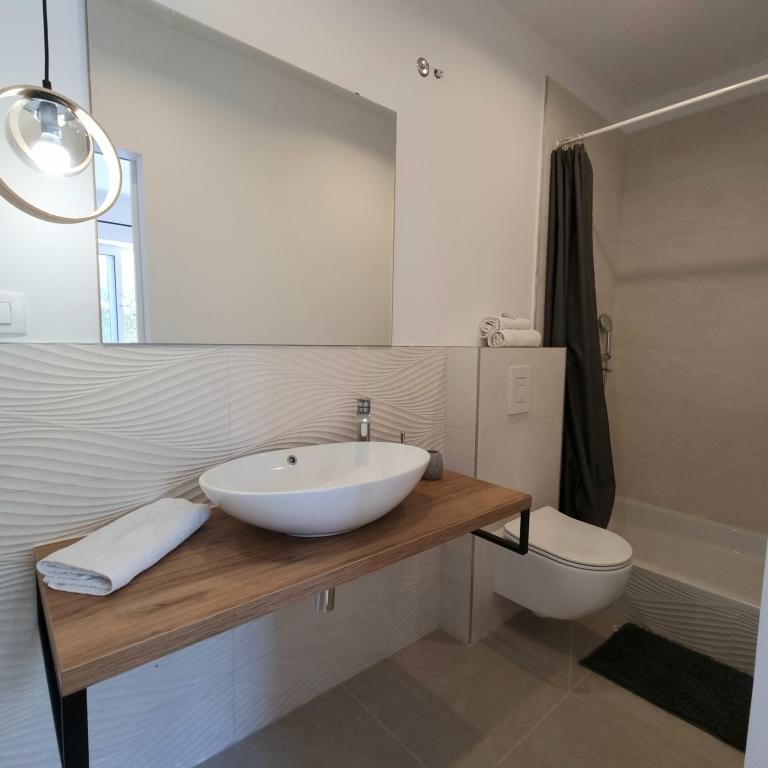 Spędziliśmy tu tegoroczne wakacje z rodziną. Nie mogliśmy dokonać lepszego wyboru. Apartament był przytulny, czysty i wyposażony we wszystkie niezbędne udogodnienia. Taras jest idealnym miejscem do relaksu, słuchania szumu fal i podziwiania pięknych zachodów słońca. Dojście do plaży prowadzi przez piękny ogród, gdzie można przechowywać dmuchańce w wodzie, dzięki czemu nie trzeba ich codziennie nosić do apartamentu. Właścicielka, jej mąż i mama są bardzo przyjaźni, pomocni i mili. Apartamentowiec znajduje się zaledwie kilka kroków od pięknej, kamienistej plaży. Morze jest idealne i pełne ryb. Żadne z nas nie chciało wracać do domu i mamy nadzieję wrócić w przyszłym roku.