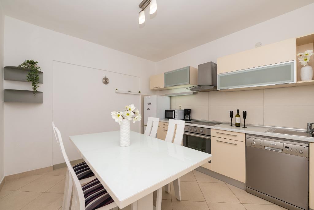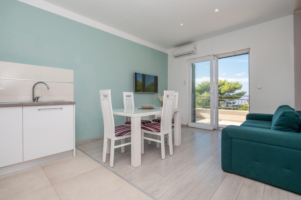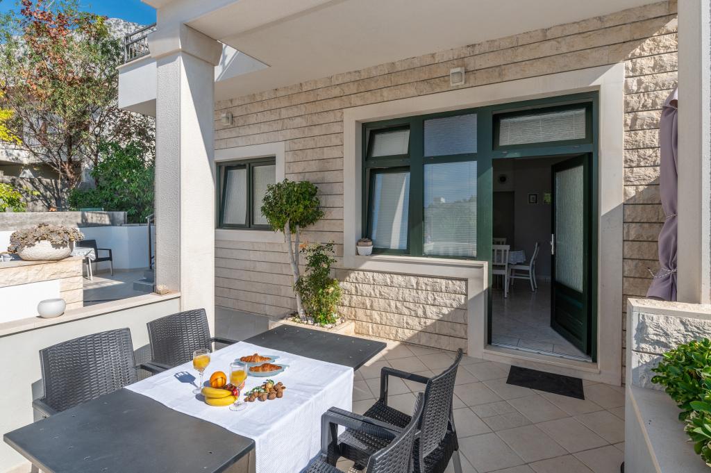 Drašnice, mała miejscowość turystyczna, położona dziesięć kilometrów na południe od Makarskiej, w drodze do Dubrownika, jest idealna na rodzinne wakacje. Dom położony jest w cichej okolicy, 150 m od morza. Wszystkie apartamenty posiadają prywatny parking, klimatyzację, telewizor, Wi-Fi, pralkę, zmywarkę