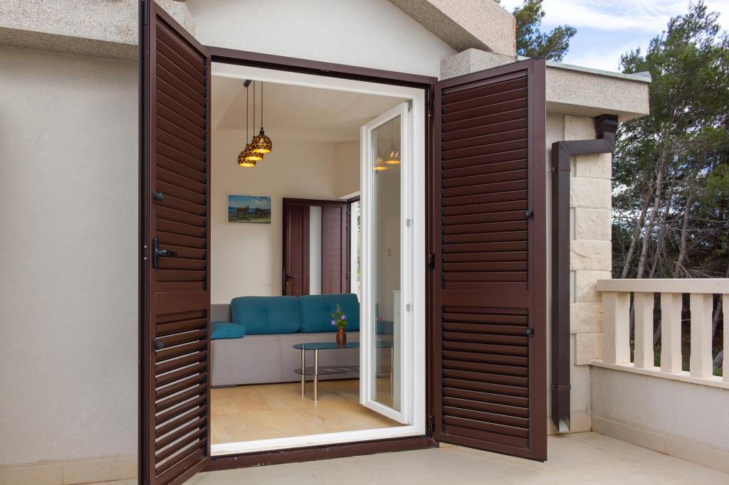 Apartamenty Val i Sol znajdują się na wyspie Drvenik Mali, w zatoce Mala Rina, w pierwszym rzędzie do morza, 70 m od wybrzeża. Apartamenty na wyspie Drvenik Mali składają się z wyposażonej kuchni, jadalni, salonu z telewizorem i rozkładaną sofą, sypialni z wentylatorem chłodzącym, tarasu z pięknym widokiem, łazienki z suszarką do włosów. Oba apartamenty mają widok na morze. Istnieje możliwość wynajęcia całego piętra domu. Apartamenty Val i Sol, Drvenik Mali, oferują bezpłatny parking, grill i bezpłatny internet. Na wyspie Drvenik Mali znajduje się sklep z ograniczoną zawartością, restauracja i kawiarnia na plaży. Dlatego zdecydowanie zalecamy zabranie ze sobą jedzenia, napojów i innych niezbędnych rzeczy.