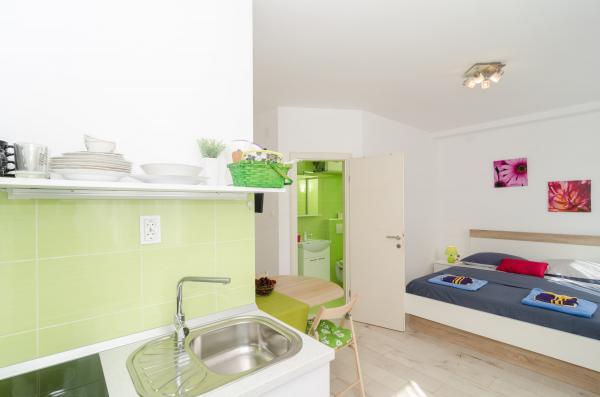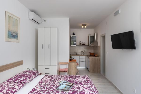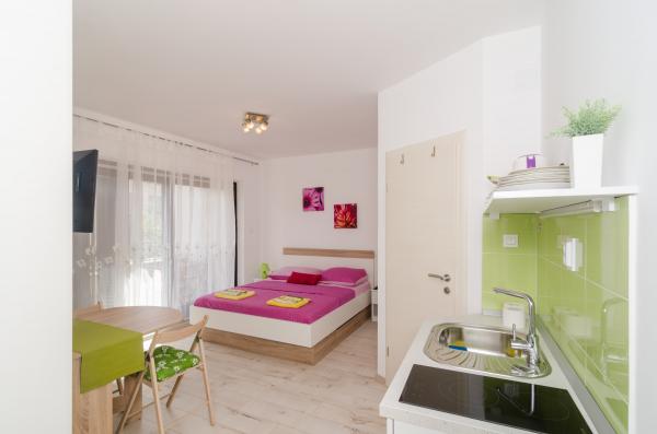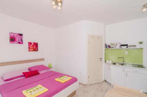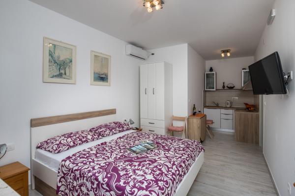 Kompleks 9 apartamentów typu studio dla dwóch osób i jeden apartament typu studio dla 3 osób w spokojnej i pięknej części Dubrownika, w rejonie Babin Kuk / Lapad. Obiekt znajduje się 10-15 minut jazdy autobusem od Stradun i tylko 5 minut spacerem od centrum Lapad. Kilka pięknych plaż znajduje się zaledwie 5 minut spacerem od apartamentów. Wszystkie apartamenty są w pełni i nowo urządzone, każdy z osobnym wejściem, kuchnią, łazienką, Internetem i telewizorem. Goście mają dostęp do dużego tarasu i grilla, a prywatny parking jest bezpłatny i dostępny w zależności od pojemności (wymagana jest rezerwacja).