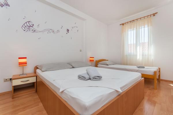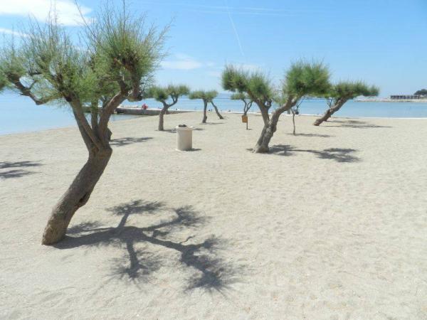 Opłata jest wliczone w cenę.Na piaszczystej plaży oferujemy naturalny cień tamaris. W okolicy masz możliwość wypożyczenia łódki, skutera wodnego, paralotniarstwa a w centrum miasta współpracujemy z agencjami organizującymi takie atrakcje jak: rafting, canyoning, tyrolka, nurkowanie, wspinaczka, paintball, wycieczki statkiem na łono natury park Radmanova Mlinica. Na plaży znajduje się pizzeria i kawiarnia, a wycieczki na pobliskie wyspy zatroszczy się sam gospodarz na prywatnej łodzi, która nie jest wliczona w cenę.