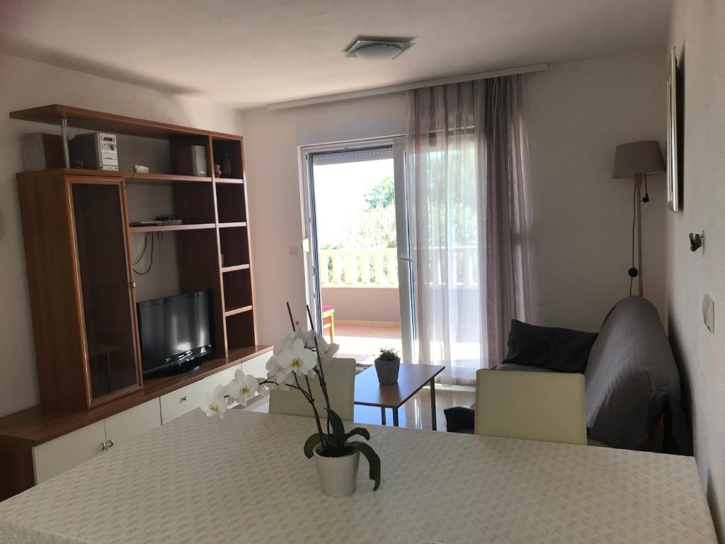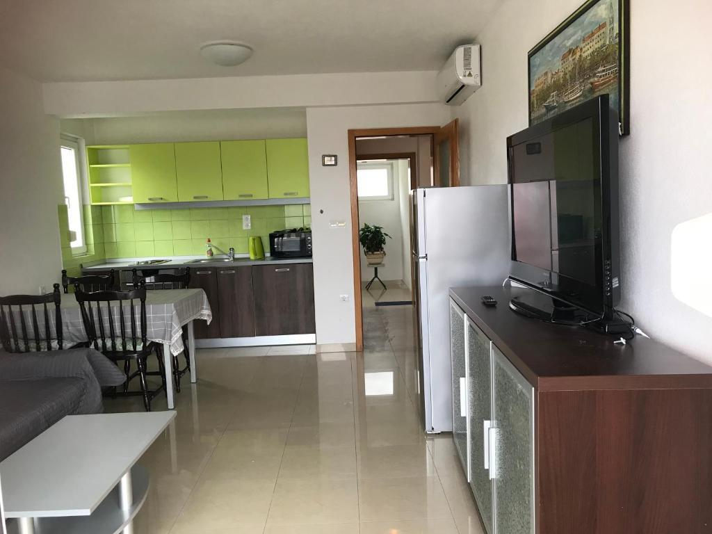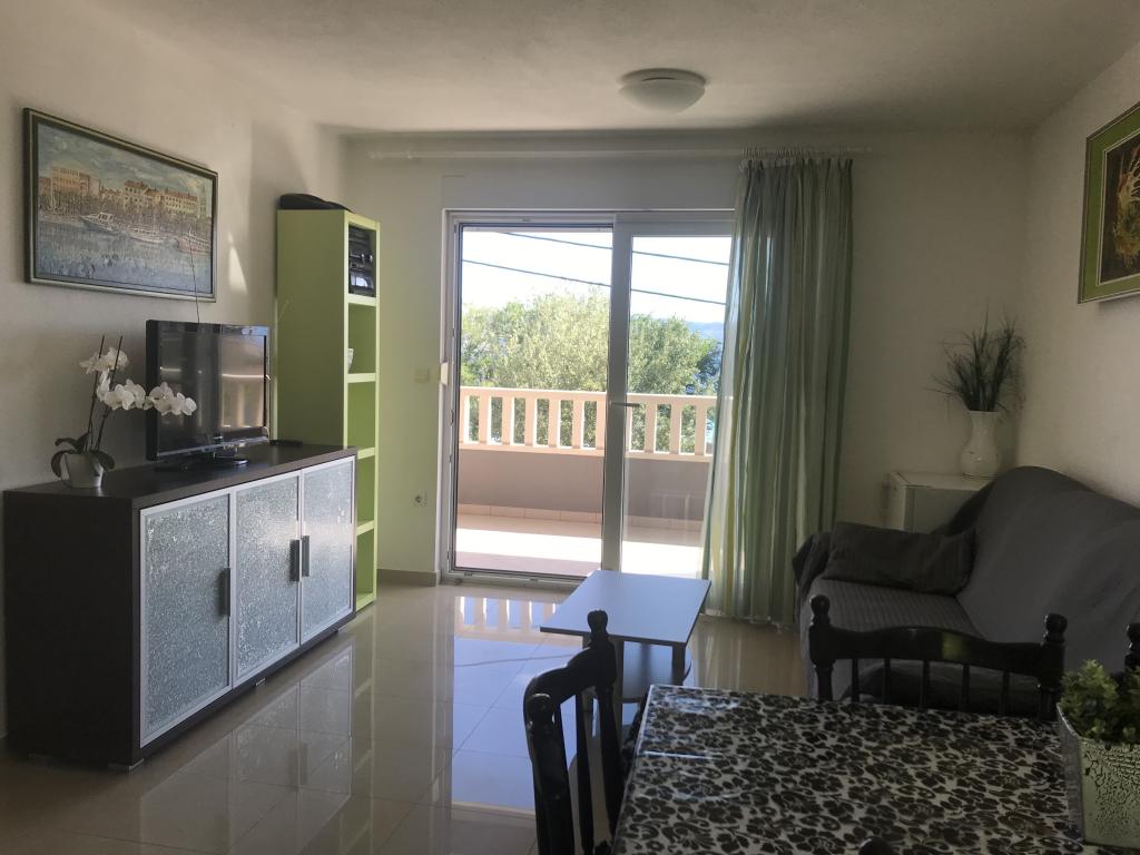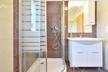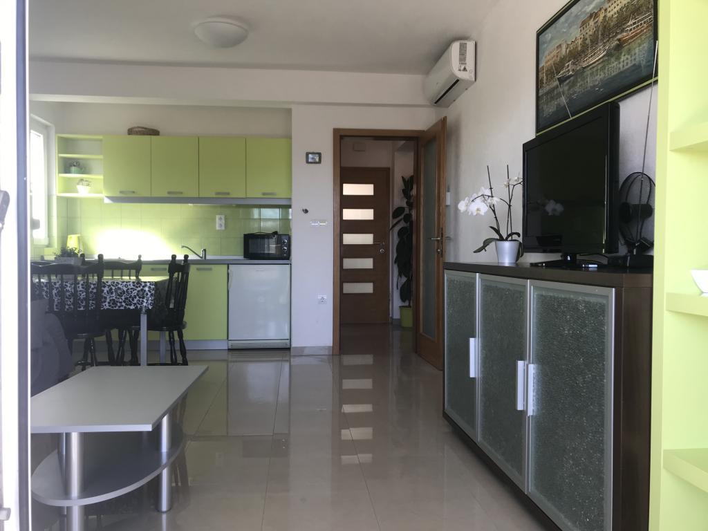 W domu znajdują się dwa mieszkania o powierzchni 75 metrów kwadratowych. Każdy apartament posiada dwie sypialnie, jeden pokój ma dwa łóżka, a drugi trzy łóżka. W przestronnej kuchni z salonem istnieje możliwość noclegu dla dwóch osób na kanapie. W korytarzu znajduje się łazienka z WC i WC. Oba apartamenty posiadają przestronny balkon z widokiem na morze. Na parterze garaże samochodowe. Aby dotrzeć do plaży oddalonej od domu o 150 metrów, należy przejść przez ulicę. W niewielkiej odległości jest do wyboru kilka rodzajów plaż i głębokość morza. Odpowiedni dla dzieci. Na plaży oprócz kąpieli i opalania można wybierać spośród wielu dodatkowych form rozrywki. Odległość do kiosku z chlebem to 50 metrów, sklepów 200 metrów, aw sąsiedztwie kilka rodzajów restauracji.