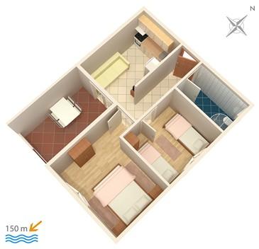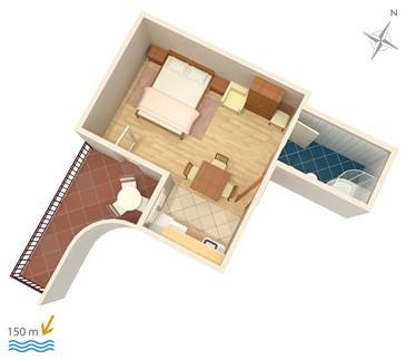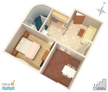 Dom w cichej ślepej ulicy bez ruchu. Jesteśmy 150m od plaży. Plaża jest piaszczysta, z dużą ławicą, idealna dla dzieci. Centrum Omis znajduje się 15 minut spacerem od hotelu, a Split oddalony jest o 25 km.