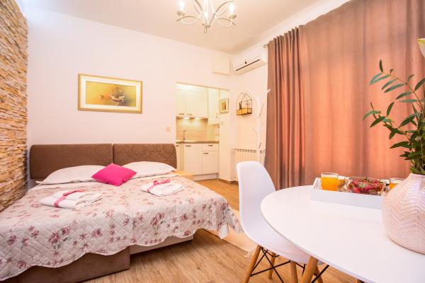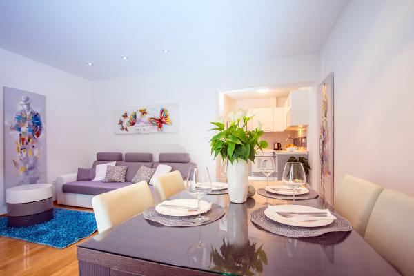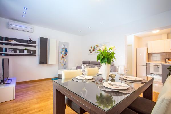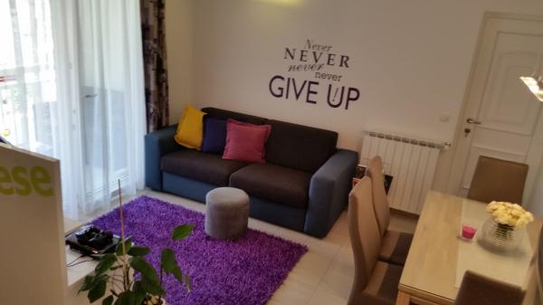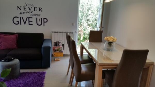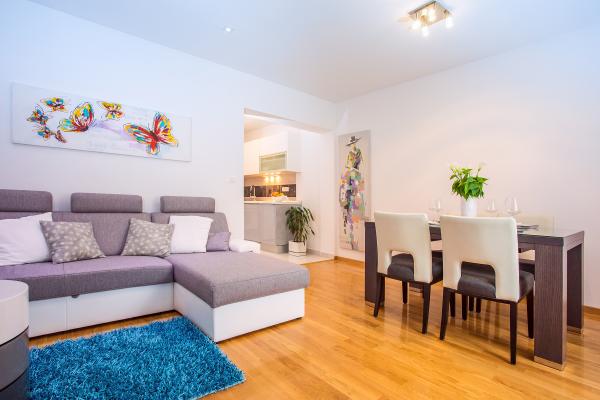 Nowe mieszkanie dobrze wyposażone w spokojnych okolicach Splitu. Apartament znajduje się 2 minuty spacerem od centrum miasta i 5 minut od plaży i znajduje się obok obiektu sportowego. Mieszkanie położone jest w cichej ulicy, na pierwszym piętrze prywatnego domu. Obejmuje: klimatyzację; tv z 900 programów; Wi-Fi; zmywarka do naczyń, pralka, a także w pełni wyposażona kuchnia. Apartament ma jedną sypialnię z podwójnym krevettom, pokój dzienny z rozkładaną sofą, 1 łazienkę i balkon ze stołem i krzesłami oraz garażu dla samochodu. Doamćin jest dostępna dla każdego pomoc i poradę Coyne. Czekamy na każdy przyjeździe.