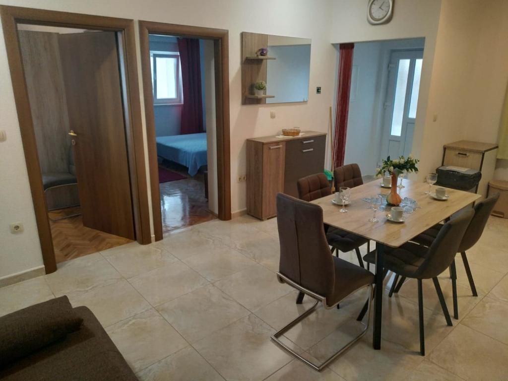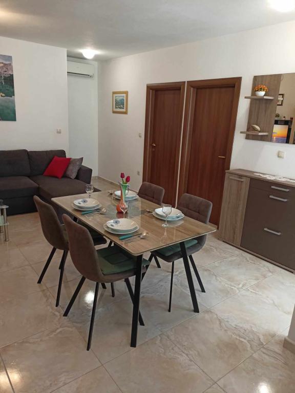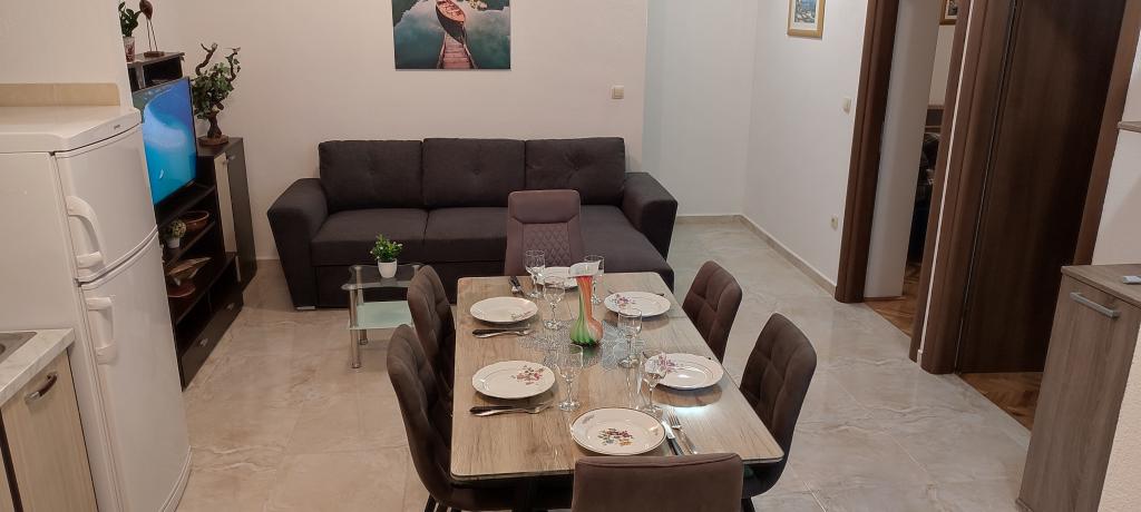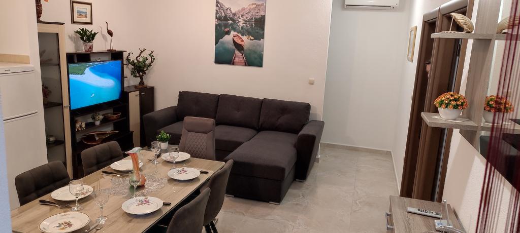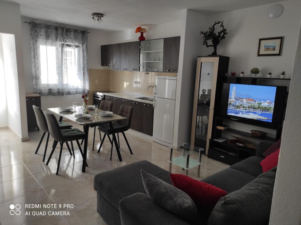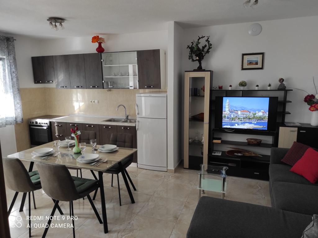 Apartamenty Mušac znajdują się w Dugi Rat - Duće, z pięknymi plażami i mnóstwem słońca, zaledwie 25 km od Splitu lub Makarskiej i 5 km od Omiša! Pierwszy apartament dla 6 osób znajduje się na pierwszym piętrze (parterze) domu. Składa się z dwóch dużych sypialni, dwóch toalet, salonu, kuchni i tarasu. Dostępny jest także grill. Drugie mieszkanie (nowe, wybudowane w 2024 roku na poddaszu) dla 7 osób znajduje się na ostatnim piętrze domu rodzinnego. Składa się z trzech pokoi, salonu, kuchni, dwóch toalet i balkonu. Apartamenty znajdują się 100 metrów od plaży. Z balkonu roztacza się piękny widok na Morze Adriatyckie i wyspę Brač. Przed domem znajdują się dwa miejsca parkingowe dla naszych gości na każdy apartament. Sprzątanie końcowe i opłata klimatyczna są wliczone w cenę. W samym centrum Dugi Rat (zaledwie 10 minut spacerem) znajdują się supermarkety, kawiarnie, poczta, piekarnia, kościół, kantor... 5 km od Dugi Rat jest Omiš i 20 km od Splitu. Omiš znany jest z rzeki Cetina (rafting, tyrolka).