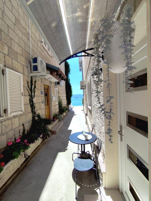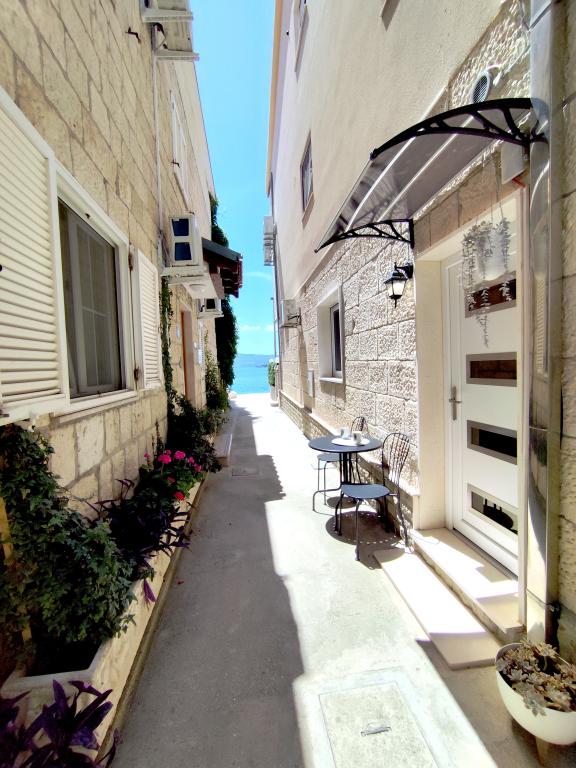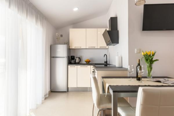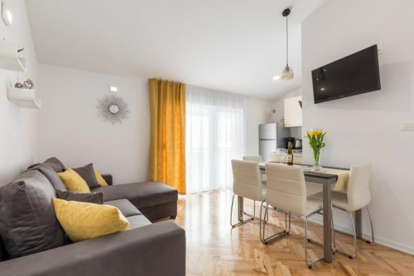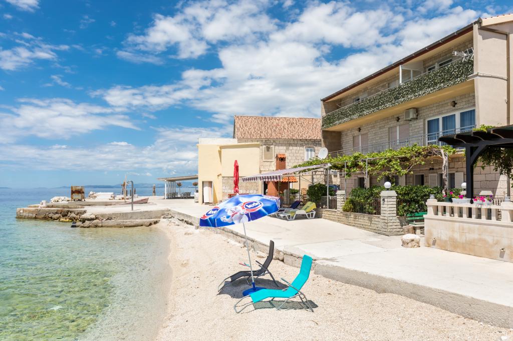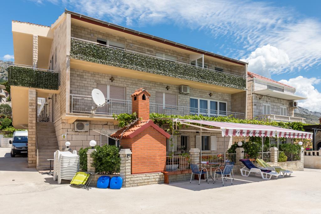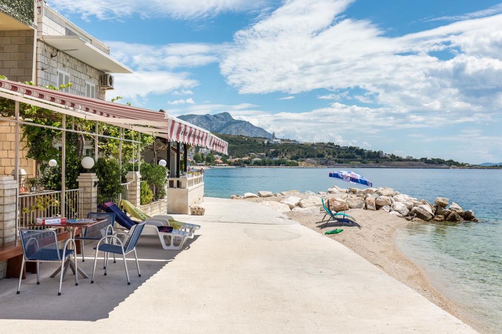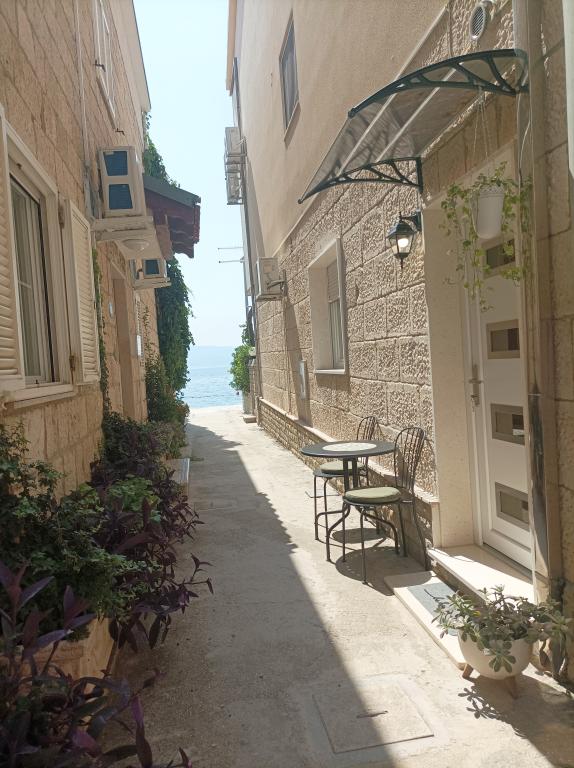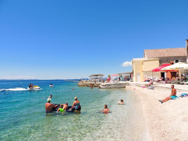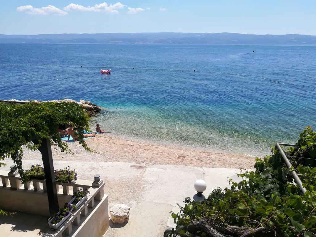 Dla oczekujących spokoju i komfortu to miejsce w 100% sie sprawdzi. Przy samej plaży, czystej, zadbanej, leżaki, prysznic. Obok bar, skutery wodne. Gospodarze przemili, cisza, spokuj, z dala od natłoku turystów. Dla dzieci wspaniale, blisko woda, plaża, Nie trzeba nic dźwigać na plażę bo plaża jest krok od apartamentu. Jest parking. Jak komuś zabraknie widoku miasteczka i turystów to autobusem do Omisia niecałe 10 min. Co roku jestem i będę w tym miejscu. Polecam.