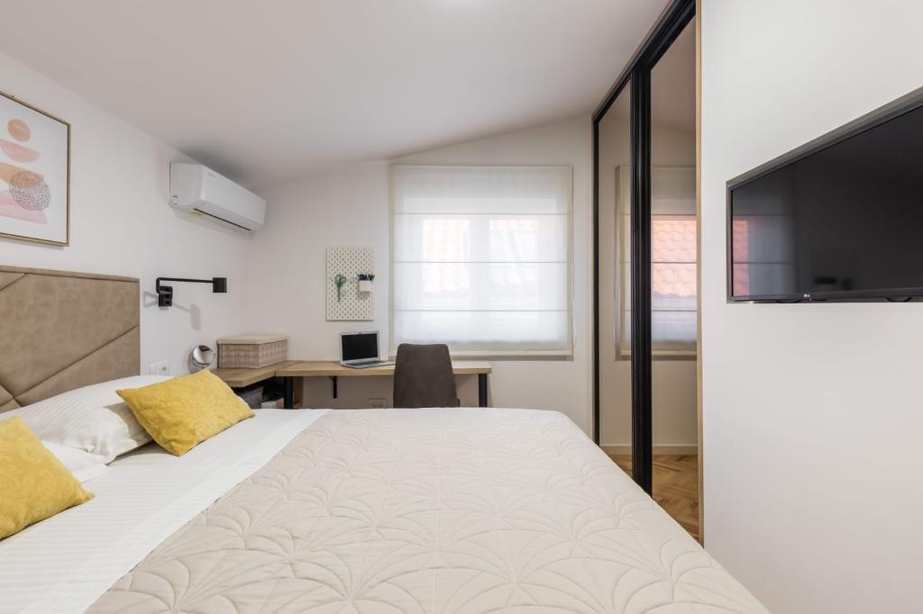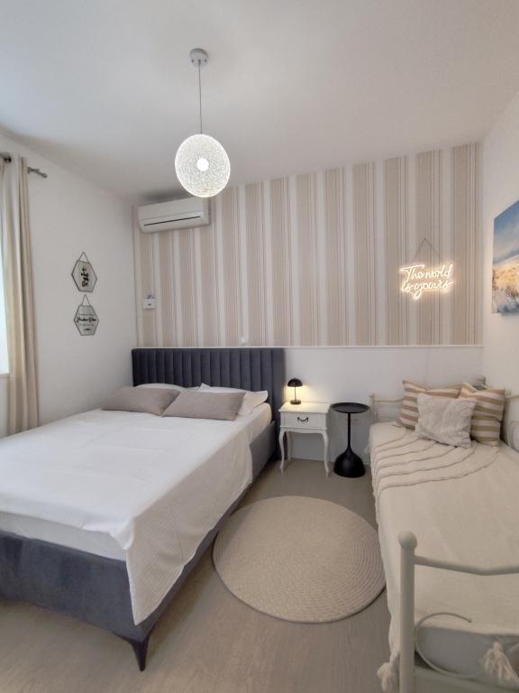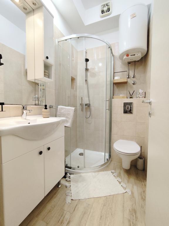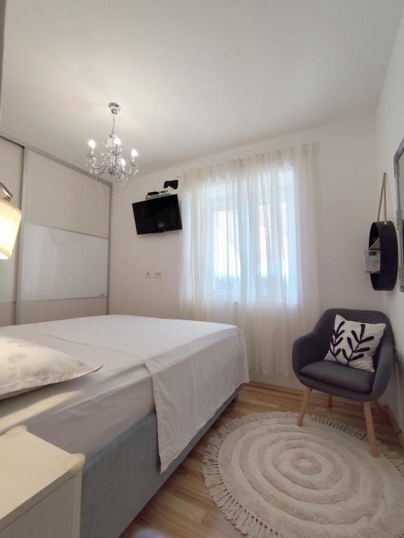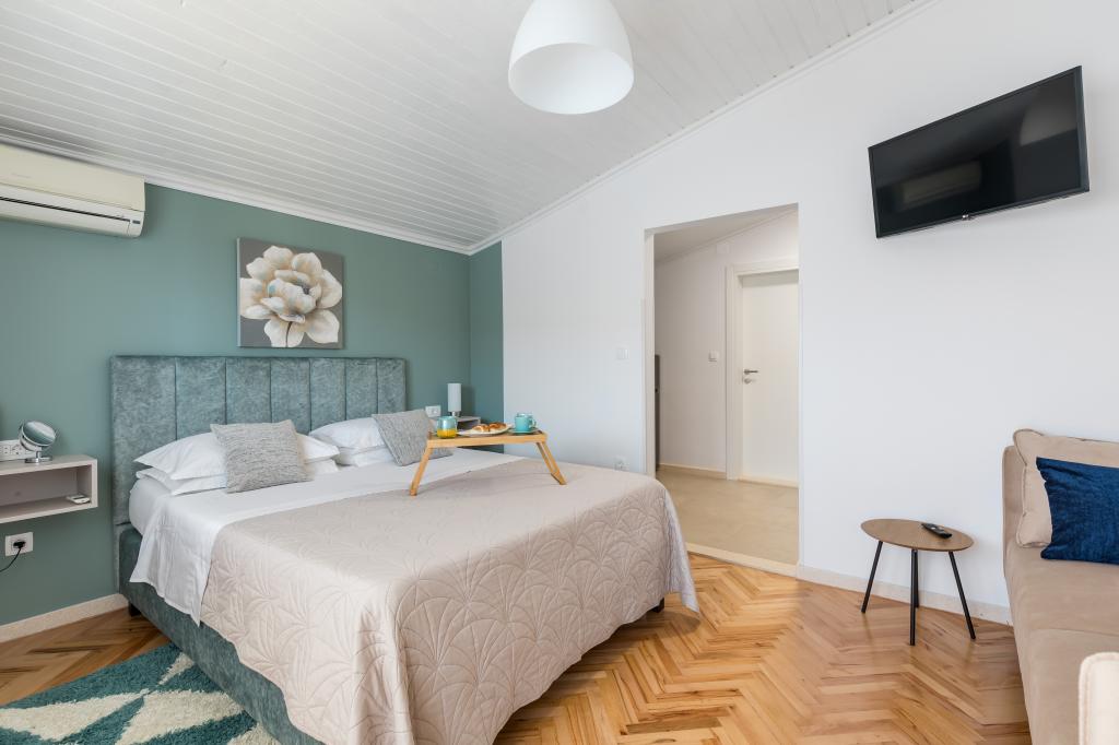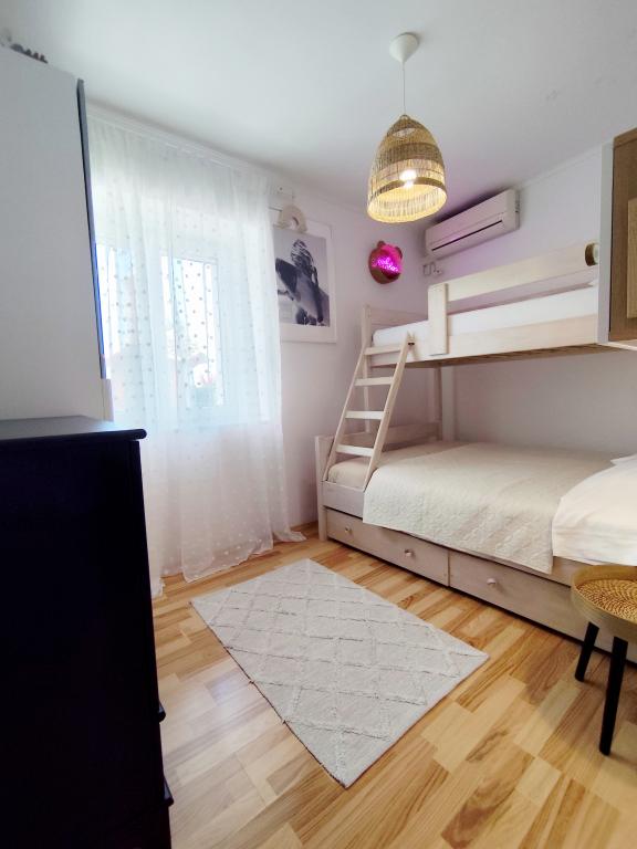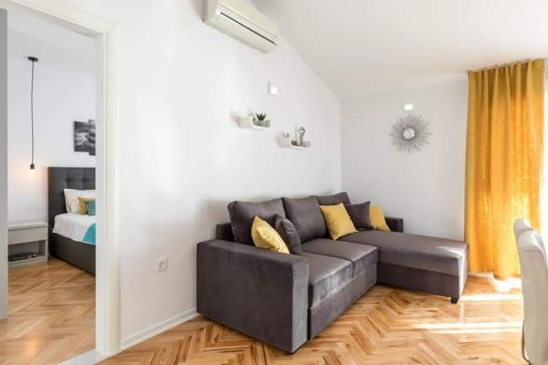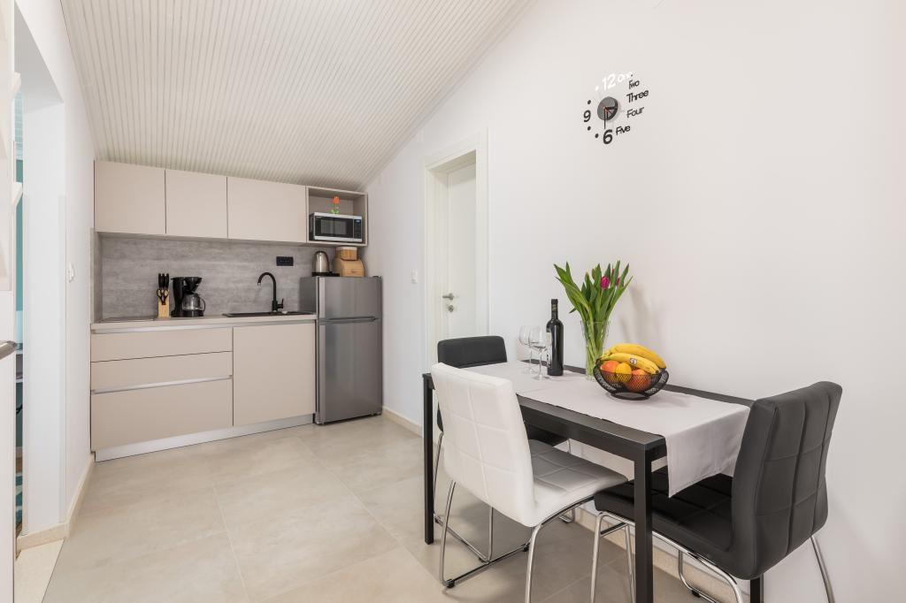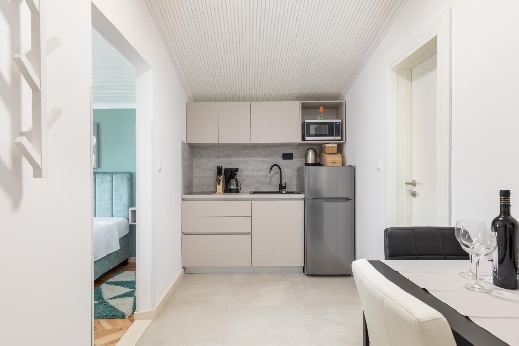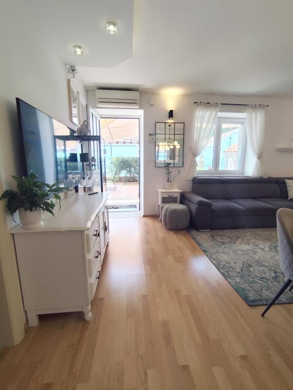 Dla oczekujących spokoju i komfortu to miejsce w 100% sie sprawdzi. Przy samej plaży, czystej, zadbanej, leżaki, prysznic. Obok bar, skutery wodne. Gospodarze przemili, cisza, spokuj, z dala od natłoku turystów. Dla dzieci wspaniale, blisko woda, plaża, Nie trzeba nic dźwigać na plażę bo plaża jest krok od apartamentu. Jest parking. Jak komuś zabraknie widoku miasteczka i turystów to autobusem do Omisia niecałe 10 min. Co roku jestem i będę w tym miejscu. Polecam.