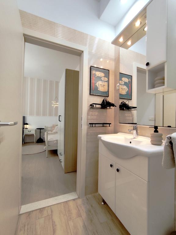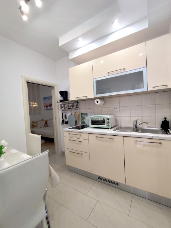Apartament jest piękny, czysty, bardzo wygodny i umeblowany z wielkim smakiem i miłością. Czuliśmy się jak w domu; wszystko, czego potrzebowaliśmy, było tam. Ogromny, gustownie umeblowany taras i przede wszystkim morze są o rzut beretem. Bardzo przyjazna gospodyni. Dziękujemy za gościnność! Morze jest krystalicznie czyste, a leżaki i parasole były dla nas gotowe. Wszystko, czego potrzebujesz na wspaniałe wakacje. Wszystko było po prostu fantastyczne; świetnie wypoczęliśmy.