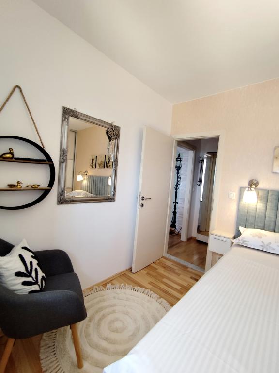 Świetnie się bawiliśmy, doskonała lokalizacja, bardzo ładne apartamenty i wspaniali gospodarze (bez względu na to, co się stanie, jeśli zgubisz klucze lub musisz iść na pogotowie ...). Mogę polecić Vila Mirjana wszystkim podróżnikom, którzy chcą obudzić się przy szumie fal. Dom jest na plaży !!!!!! Plaża jest mała, więc nie przychodzą tam inni ludzie, tylko goście z willi są na plaży. Nie noś zbyt wielu ubrań, ponieważ potrzebujesz tylko jednej sukienki i kostiumu kąpielowego. Wszystko jest bardzo blisko (restauracja, bar, rynek, poczta ...) Nie trzeba w ogóle korzystać z samochodu. W końcu znaleźliśmy nasz wymarzony dom na wakacje!