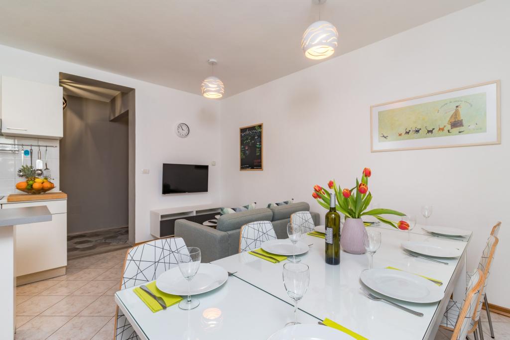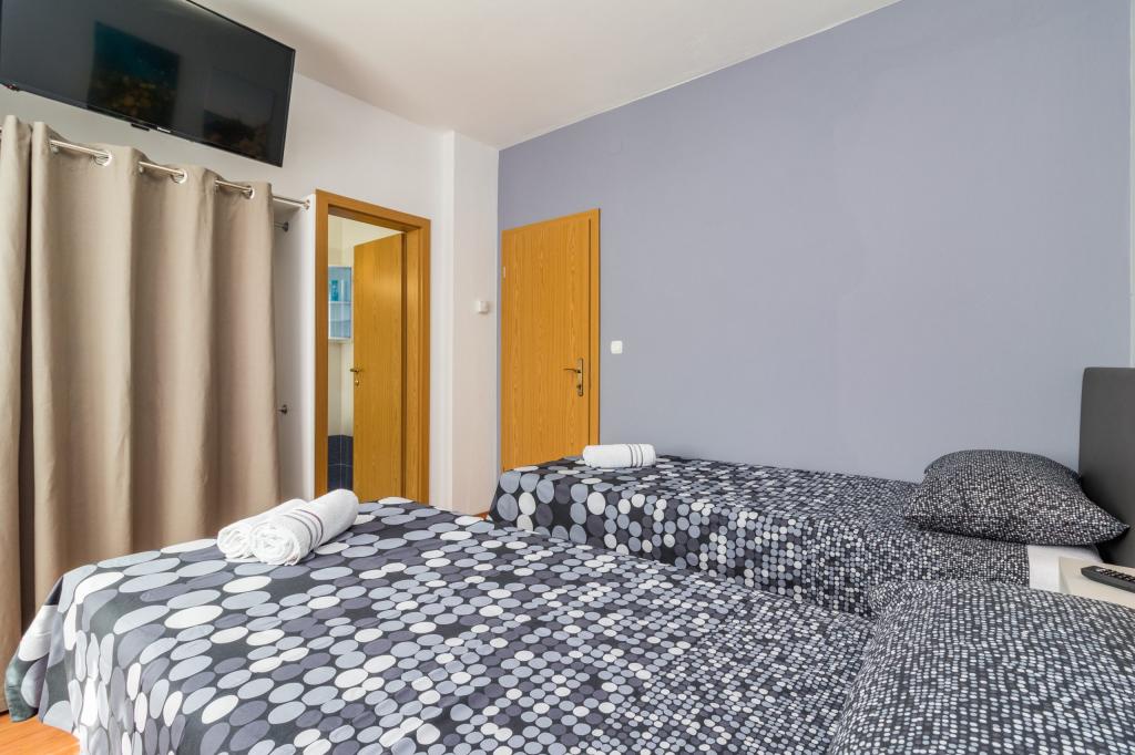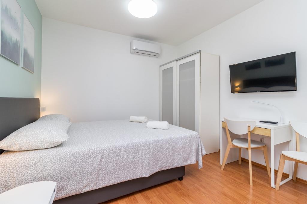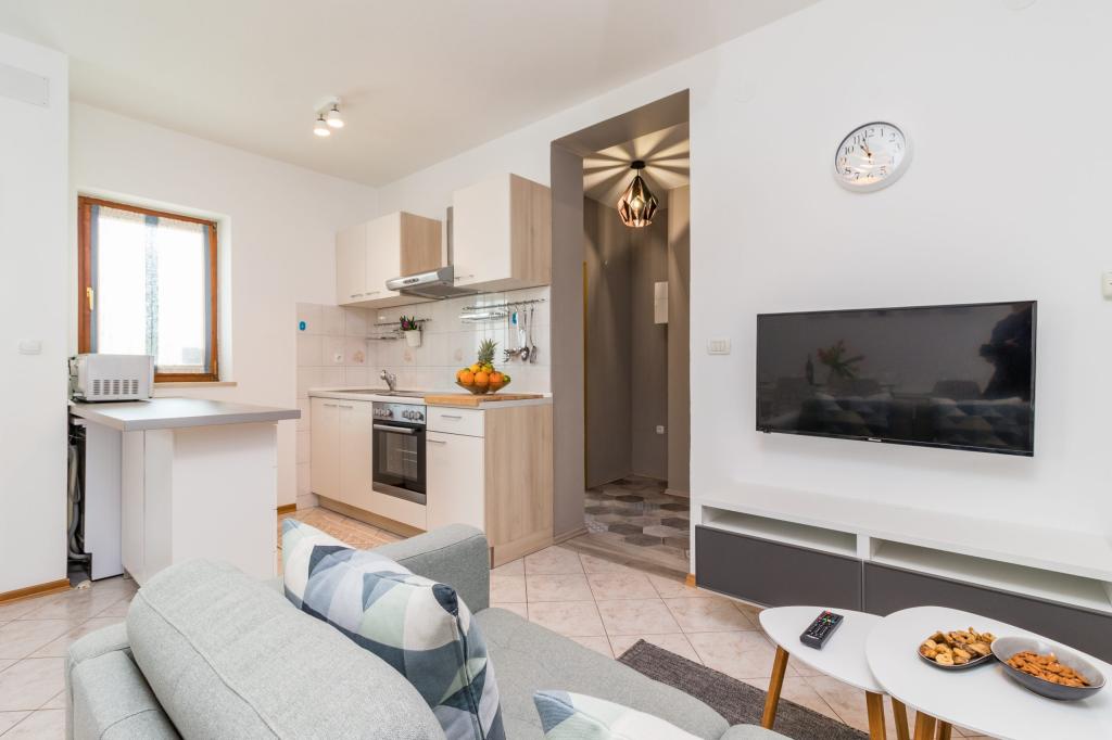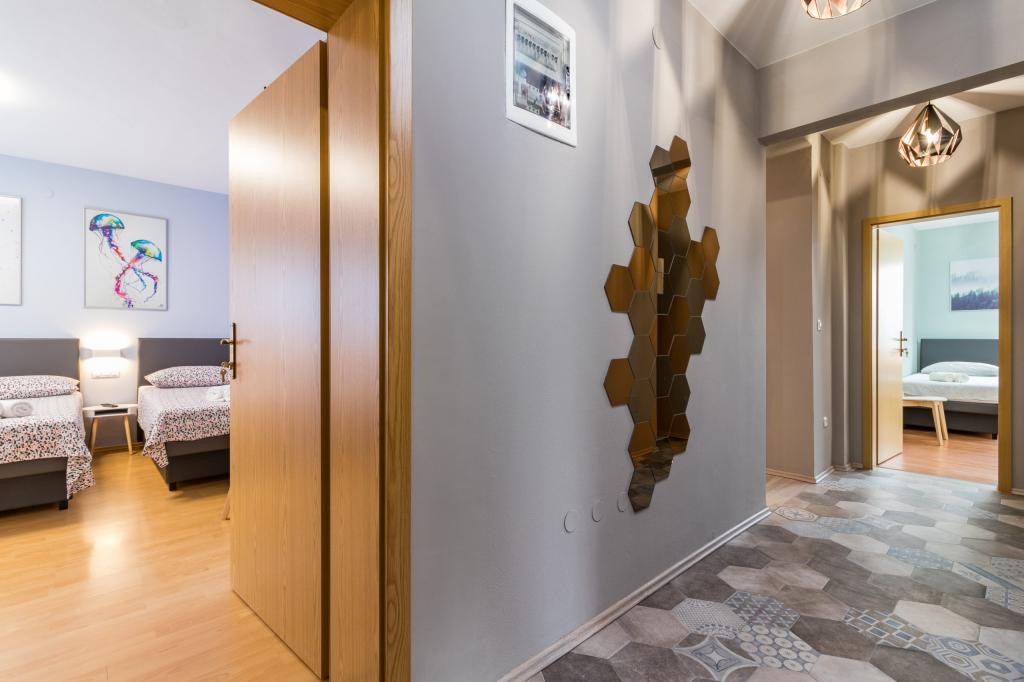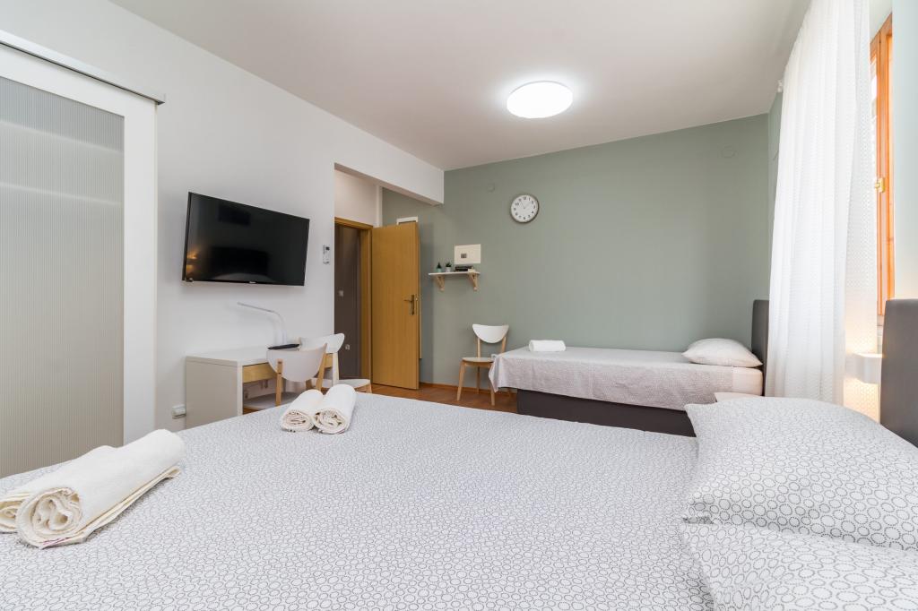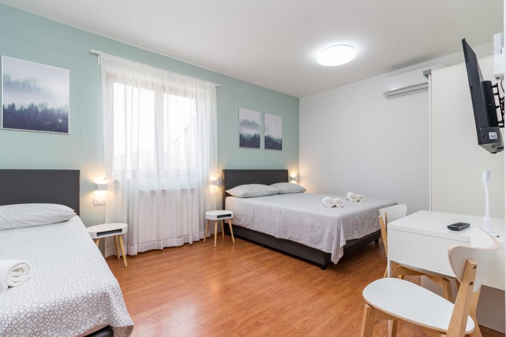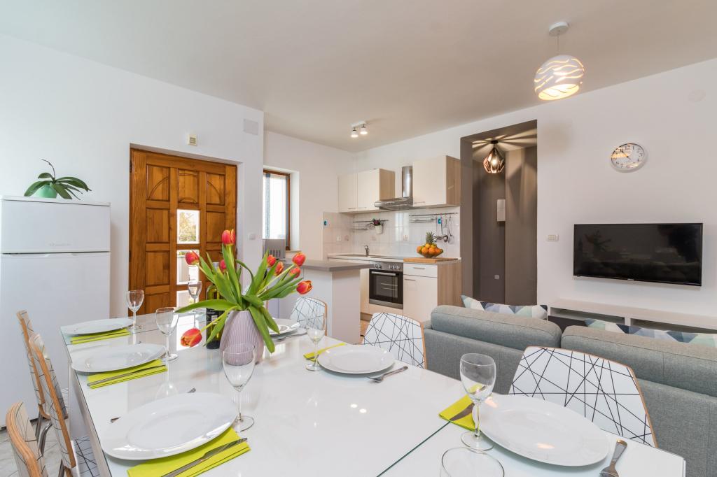 W pełni wyposażony apartament dla 8 osób, z trzema sypialniami i łazienkami, zaledwie 800 m od plaży. Prywatny basen ze słoną wodą, plac zabaw dla dzieci i grill sprawią, że Twoje wakacje będą niezapomniane. Każda sypialnia posiada własną telewizję satelitarną, klimatyzację i ogrzewanie, kuchnia jest w pełni wyposażona, dostępny jest również parking i bezpłatny bezprzewodowy dostęp do Internetu. Apartament znajduje się pomiędzy małym miasteczkiem rybackim Fažana i starożytną Pulą, w pobliżu Parku Narodowego Brijuni.
