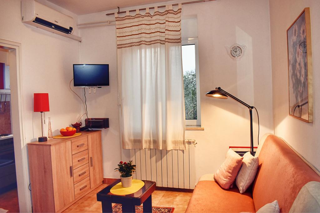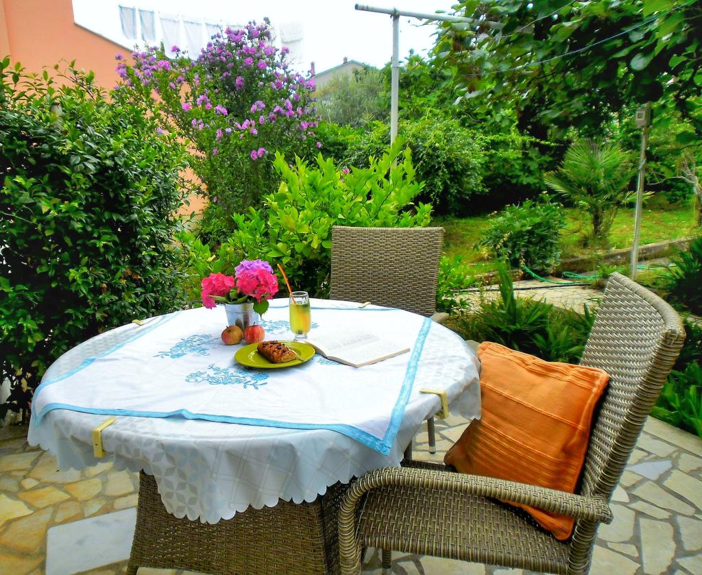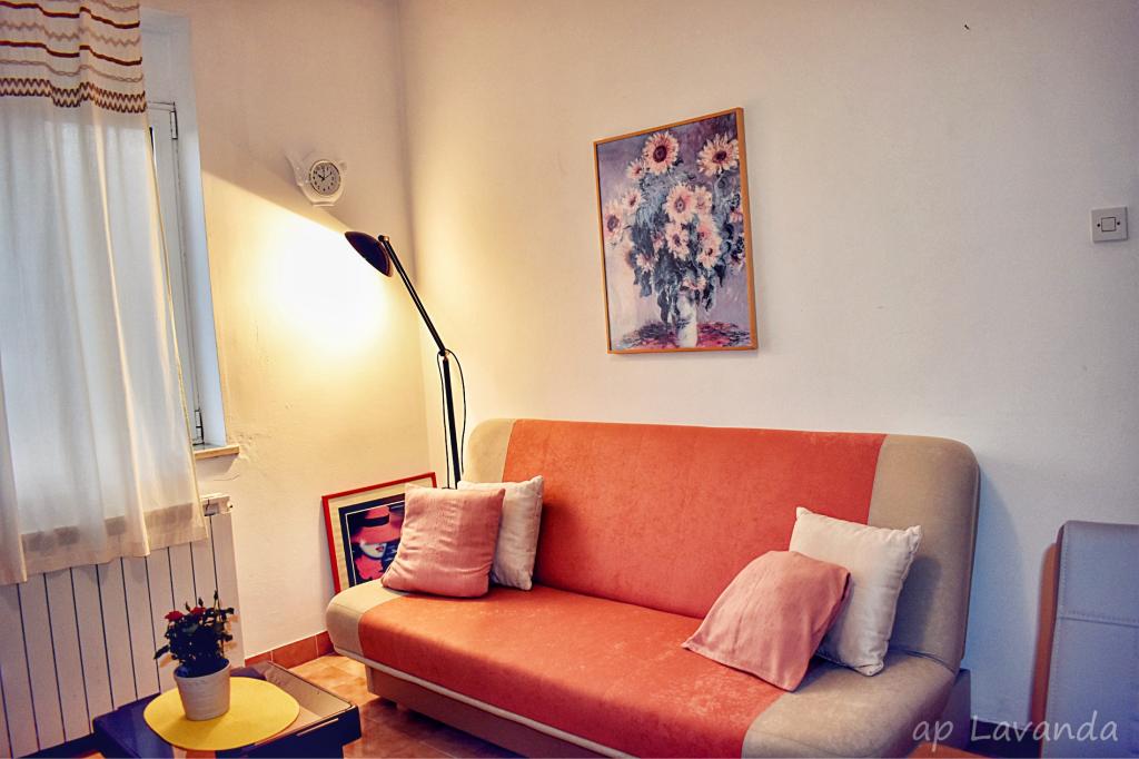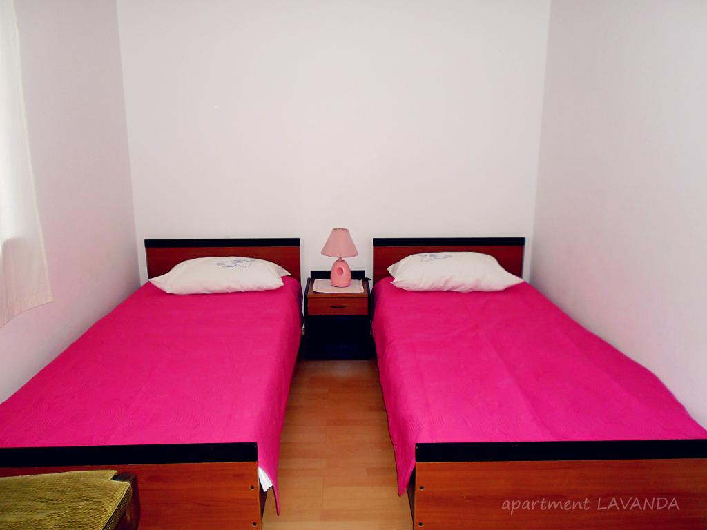 Apartament Lavanda 18 położony jest w spokojnej okolicy w wiosce Valbandon. Obiekt oddalony jest o 850 metrów od morza i 2 km od centrum miejscowości Fažana. Do najbliższej plaży z naturalnym cieniem i promenadą można dojść pieszo w 15 minut. Apartament położony jest na parterze domu rodzinnego, otoczonego zielenią i dużym ogrodem (idealnym do zabaw dzieci i wypoczynku oraz relaksu przy grillu). Na podwórku znajduje się prywatny parking z naturalnym zacienieniem (na 2 samochody). Apartament posiada osobne wejście i oferuje zakwaterowanie dla maksymalnie 4 osób. Składa się z: korytarza, sypialni z łóżkiem małżeńskim, sypialni z 2 łóżkami pojedynczymi, łazienki, kuchni, jadalni, salonu i dużego tarasu. Kuchnia jest w pełni wyposażona (kuchenka z piekarnikiem, okap, lodówka z zamrażarką, zmywarka, mikrofalówka, czajnik, ekspres do kawy, blender, sokowirówka, wystarczająca ilość naczyń do przygotowywania i serwowania jedzenia. Inne udogodnienia: telewizja satelitarna, WiFi, dwie klimatyzatory, biurko na laptopa.