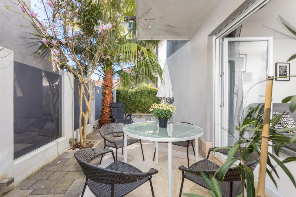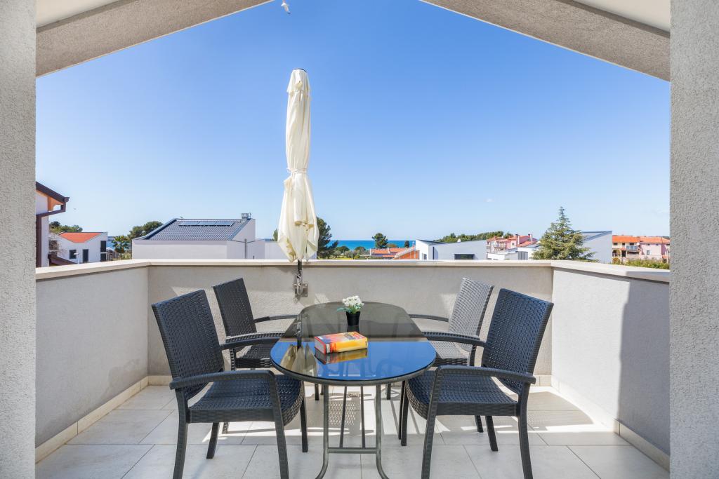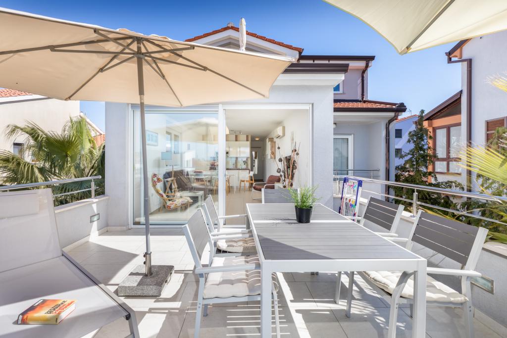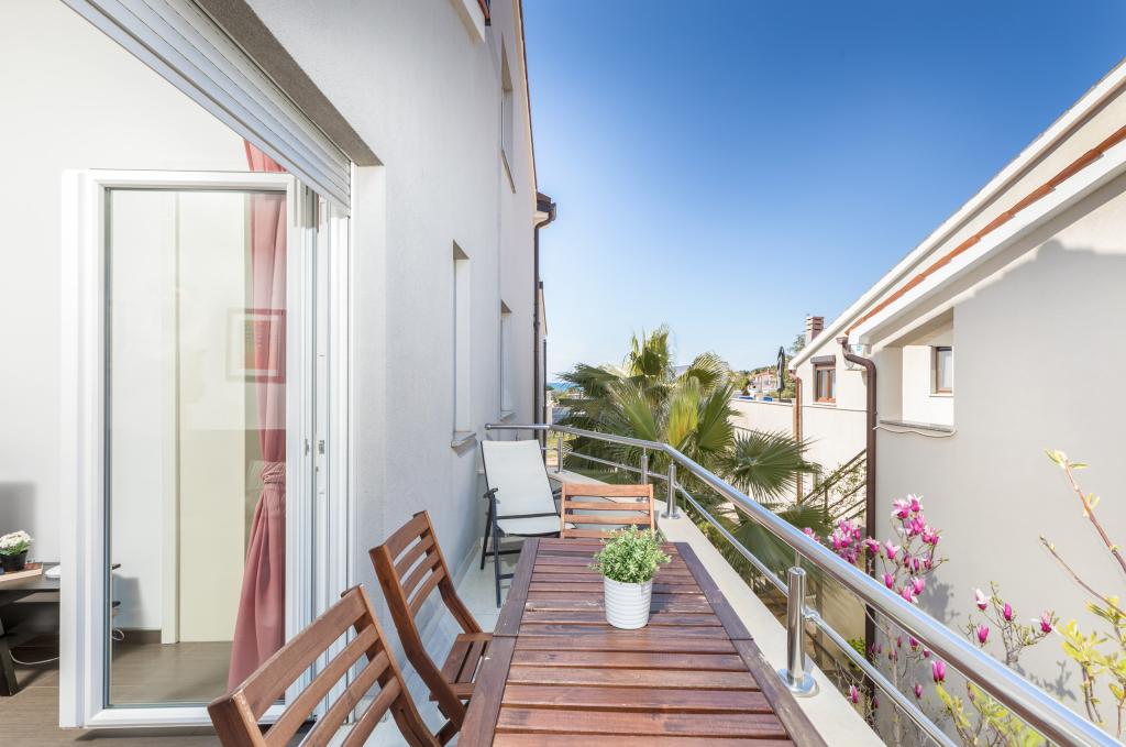Nowoczesny dom z 5 apartamentami, z widokiem na morze, 200 m od plaży. Każdy apartament posiada miejsce parkingowe przed domem. W pobliżu budynku znajduje się kompletny program niezbędny do przyjemnego wypoczynku. (sklepy, plaża, lekarz, restauracje, bar, stare miasto itp.) Wszystko to w zasięgu kilkuminutowego spaceru.