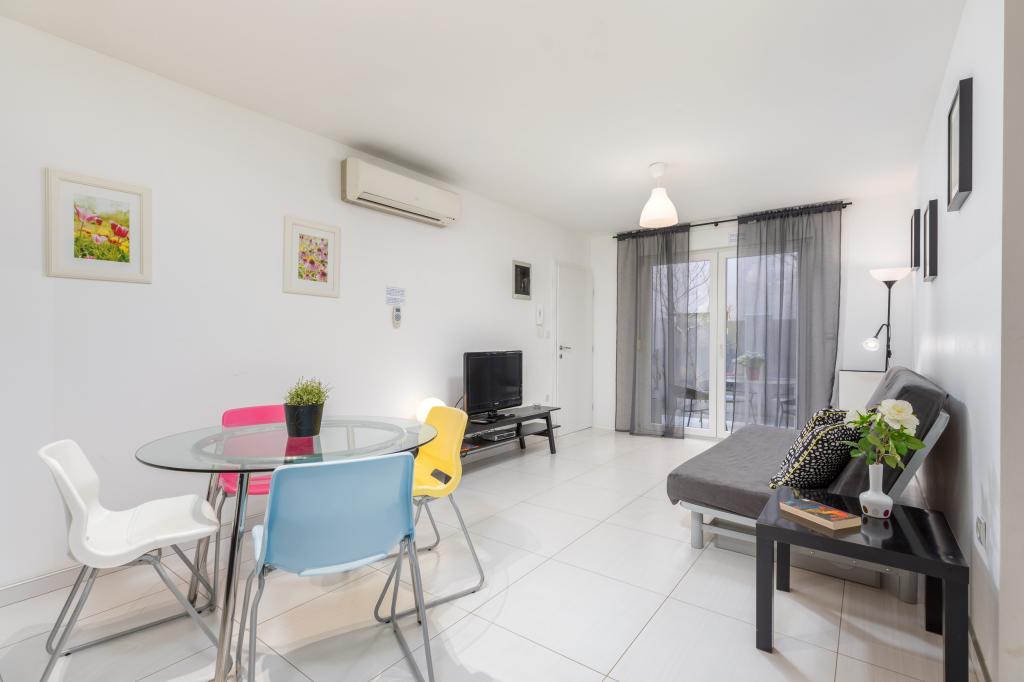 Dawno nie byliśmy w tak pięknym, dobrze wyposażonym, stylowym mieszkaniu. Na każdym kroku widać, że właściciel pomyślał o wszystkich drobiazgach, których każdy potrzebuje, aby cieszyć się tym mieszkaniem. Dwa klimatyzatory, wszystkie pokoje mają żaluzje, duże szafy i dużo miejsca do przechowywania. Mają nawet gaśnicę. W łazience znajduje się wysokiej jakości prysznic i dodatkowy grzejnik. Były też wysokiej jakości ręczniki. Kuchnia, niepowtarzalna. Duży zestaw wysokiej jakości pojemników i duży zestaw talerzy. Słoiki na każdą okazję i duży zestaw sztućców. Zawiera zmywarkę z tabletkami do zmywarki. Krótko mówiąc, kuchnia jest tak wyposażona, jak w domu. Na tarasie znajdują się wszystkie krzesła, stół, leżaki i parasole w tym samym stylu. Mieszkanie jest tak piękne, jakby zostało zaprojektowane przez profesjonalnego architekta wnętrz. Okolice mieszkania są również bardzo piękne. Każdy apartament posiada domofon. Serdecznie polecam każdemu kto lubi mieszkać lub spać w pięknym i czystym mieszkaniu.