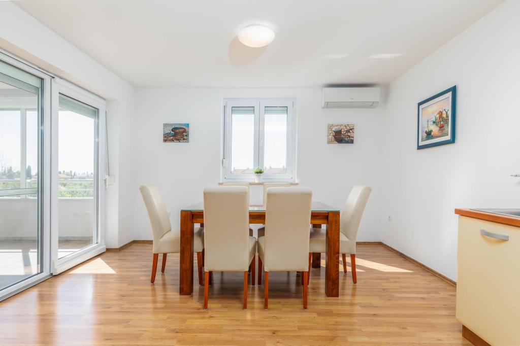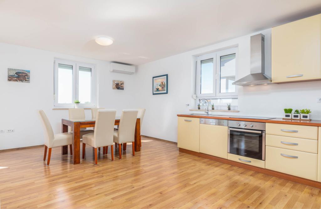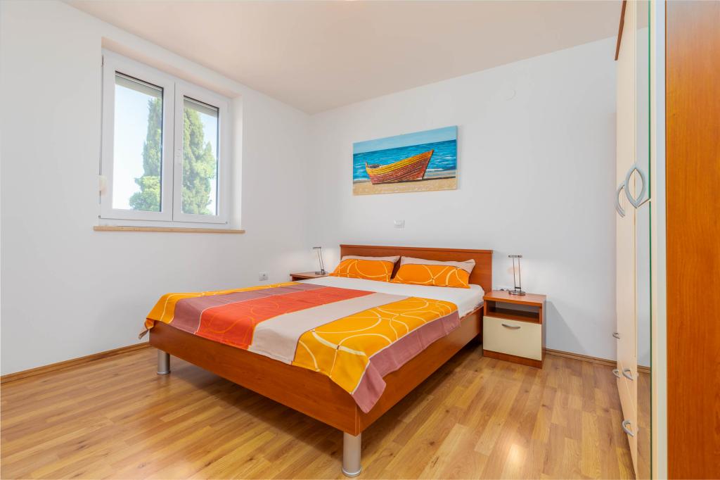 Nowe, komfortowe mieszkania w domu wybudowanym w 2014 roku. Znajdują się zaledwie 800 m od plaży i centrum miasta, w zielonej i spokojnej części Fažany. Położone na pierwszym i drugim piętrze domu rodzinnego zapewniają pełną prywatność oraz możliwość relaksu i wypoczynku. Okolica jest bardzo cicha, w okolicy tylko kilka domów jednorodzinnych. Z drugiej strony niedaleko do plaży i centrum miasta. Najbliższy targ oddalony jest o 5 minut spacerem. W centrum miasta znajduje się wiele restauracji, kawiarni, sklepów, sklepów z pamiątkami, apteka, lekarz, poczta, bank, dworzec autobusowy, bankomaty - wszystko, czego potrzebujesz na idealne wakacje.