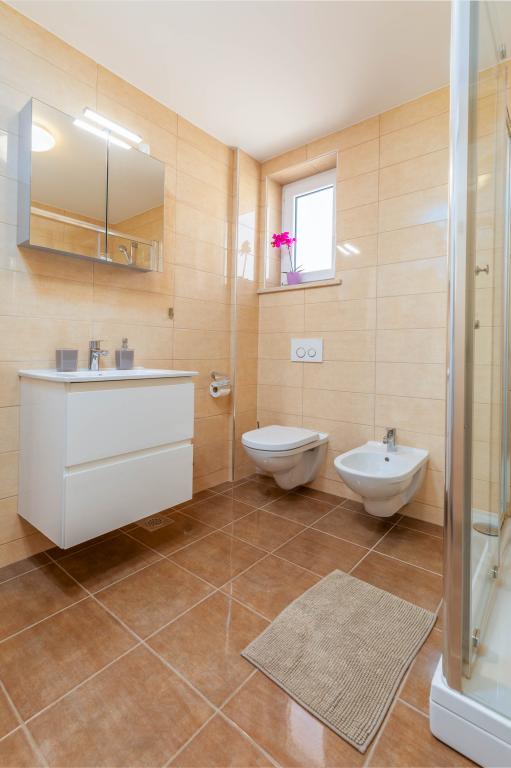 Bardzo wygodny, czysty i przestronny apartament. Przyjęcie w apartamencie było bardzo miłe i przyjazne. Apartament posiada zadaszone miejsce parkingowe, rolety i moskitiery we wszystkich oknach, łącznie z tarasem. Łóżka są bardzo wygodne, kuchnia w pełni wyposażona. Do dyspozycji Gości są dwie łazienki, jedna z pralką i toaletą..., a druga z prysznicem, bidetem i toaletą... Taras z przepięknym widokiem i możliwością całkowitego zamknięcia roletami w razie burzy. Można powiedzieć, że idealny apartament, 5/5. Polecam.