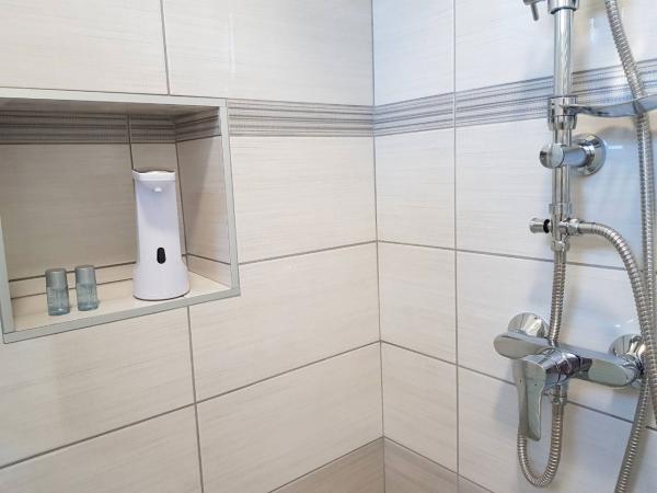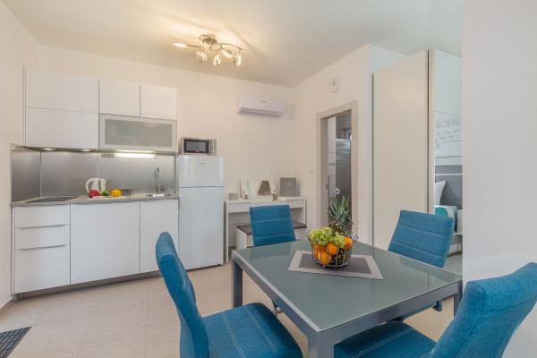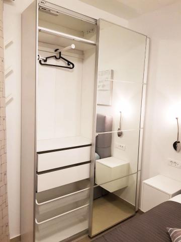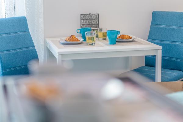 Opłata jest wliczone w cenę.The kitchen is fully equipped with all accessories, dishwasher, 2-pane glass ceramic plate, freezer and fridge. Each apartment has a table and chairs for dining inside and on the terrace. We are very proud to offer beds of very large dimensions of 190x210 with extra quality mattresses and quality bedding, USB charging sockets are next to the bed. Lights have ability to change color and have bluetooth speaker for listening music from mobile phone. Great WI-FI and big screen Android TV with variety of programs from Internet or satelite TV and free Netflix service. Each apartment has a make-up table and chair, but it can be used as a work desk. The bathrooms are equipped with floor mats, towels, toilet paper, hair dryer and First aid box.