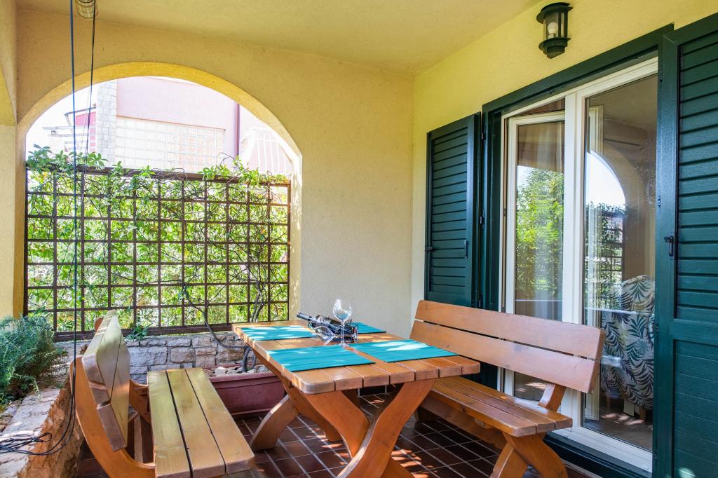 Apartament wyposażony jest we wszystko, czego potrzebujesz. Do plaży można dojść pieszo w 10 minut. Warto zwiedzić okolicę. Właściciele są bardzo serdecznymi i troskliwymi ludźmi, zawsze dostępnymi, aby odpowiedzieć na pytania lub rozwiać wszelkie wątpliwości. Kiedy Nada coś upiecze, Zdravko przynosi coś jeszcze, łącznie z winem i travaricą. Nawiasem mówiąc, Zdravko mówi bardzo dobrze po niemiecku i zawsze daje wskazówki dotyczące wycieczek lub ... Miło jest usiąść na zadaszonym tarasie. Wszystko w domu i wokół niego jest bardzo dobrze utrzymane. Na rowerach można wybrać się do piekarni lub supermarketu.