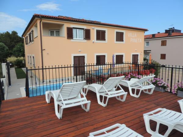 Villa Pineta, położona w miejscowości Fažana, w pobliżu Parku Narodowego Brijuni, w pobliżu obozu Pineta, zaledwie 650 metrów od plaży, oferuje niezapomniane wakacje w 5 nowocześnie wyposażonych i komfortowych apartamentach. Willa z widokiem na morze oferuje relaks, przyjemność ze świeżego morskiego powietrza i korzyści z pobliskiego lasu sosnowego, rekreacji i aktywnego wypoczynku. Apartamenty są klimatyzowane, z bezpłatnym dostępem do Internetu i telewizją satelitarną. Dla każdego mieszkania przewidziane są dwa miejsca parkingowe. Parking jest również objęty nadzorem kamer bezpieczeństwa.