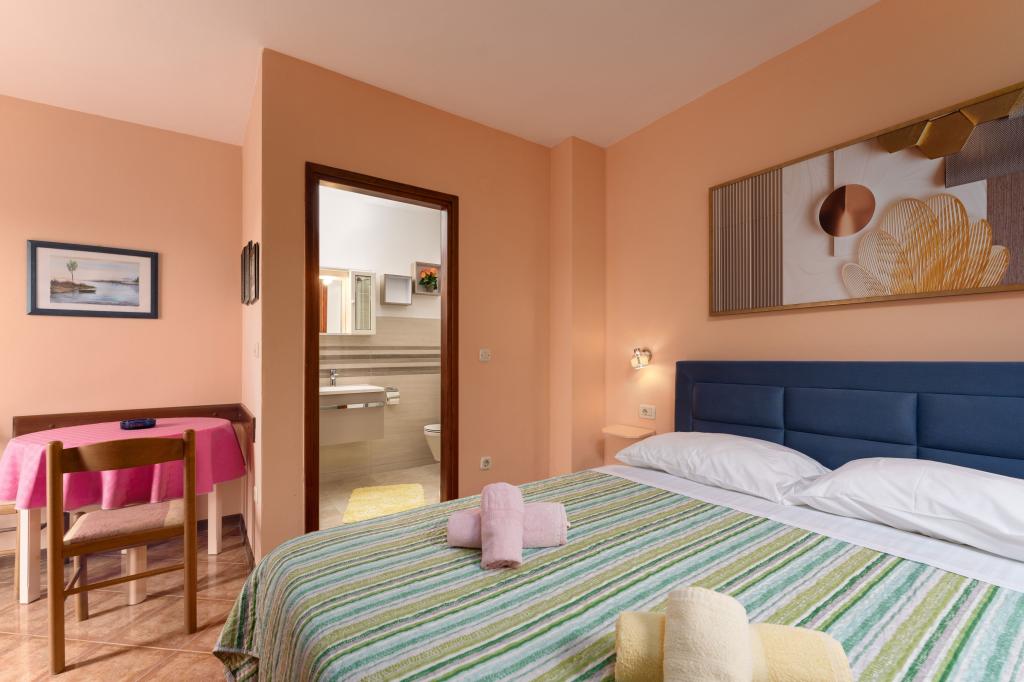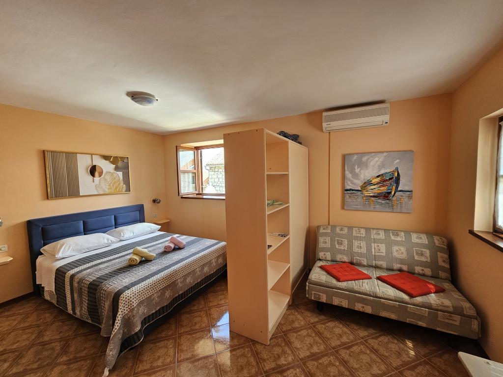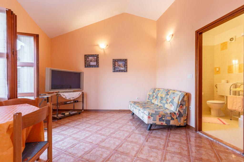W centrum starego miasta Funtana odrestaurowano kamienny dom z małymi rodzinnymi apartamentami. Wszystkie apartamenty posiadają mini kuchnie z niezbędnym wyposażeniem (naczynia, ekspres do kawy ...=, łazienkę z toaletą (ręczniki ...), sypialnię (wszystkie niezbędne pościele), pokój dzienny (sofa, którą można rozłożyć na trzecie łóżko, telewizor SAT, WIFI, klimatyzacja) oraz taras.Poczta, mini market, restauracje i inne obiekty turystyczne oddalone są tylko o 100m.Plaża ze wszystkimi niezbędnymi udogodnieniami oddalona jest od APP 300m.