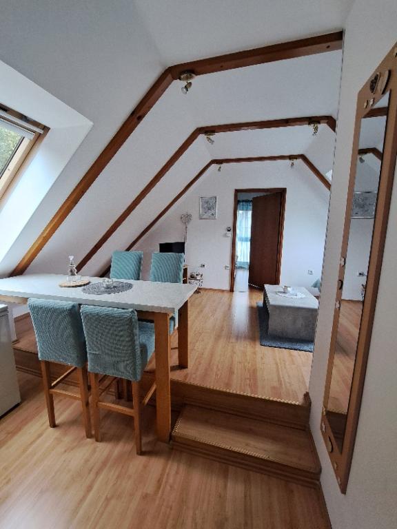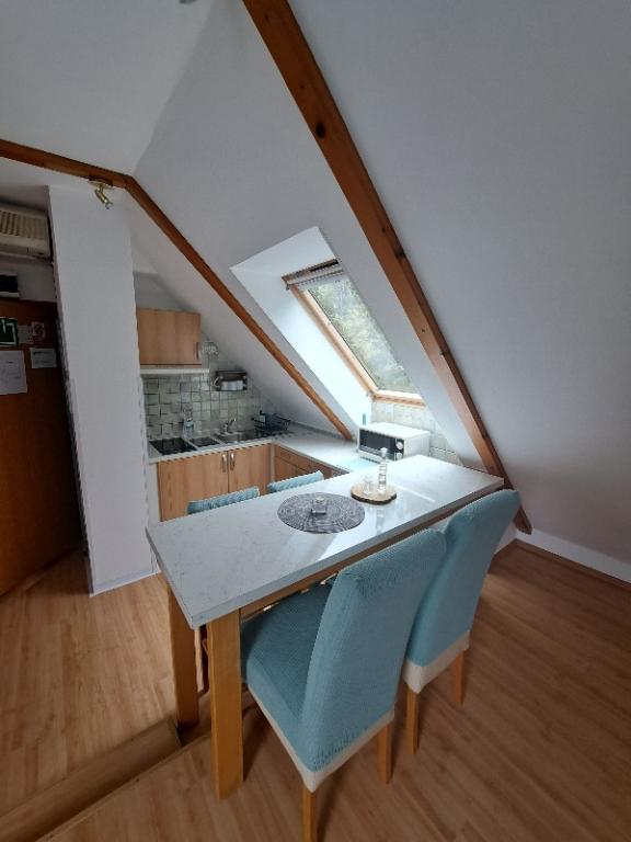 Apartamenty Erika znajdują się 800 m od centrum Fužine. Znajdują się one w rodzinnym domu z osobnym wejściem dla gości. Posiadamy dwa apartamenty, które są oznaczone gwiazdkami *** i **** oraz pokój dwuosobowy z osobną łazienką, które są oznaczone gwiazdkami ***. Nasze zakwaterowanie nosi markę Kvarner Family Quality i jest dostępne pod markami Przyjazny dla pieszych i Przyjazny dla rowerzystów. Mamy przechowalnię dla ośmiu rowerów. Do dyspozycji gości apartamentu jest nasz ogródek, który jest pięknie urządzony i posiada dużo zieleni. Dysponujemy ogrodowym grillem, placem zabaw dla dzieci, na który składają się zjeżdżalnia, huśtawka, huśtawka oraz kort do badmintona. Goście mogą w spokoju cieszyć się grillem, cieniem i świeżym górskim powietrzem. Apartamenty wyposażone są w centralne ogrzewanie, klimatyzację i łącze Wi-Fi. W pobliżu znajduje się nasz park adrenaliny (park rozrywki i paintballa Vara), który można odwiedzić w miesiącach letnich. Przyjedź i poczuj uroki małego miasteczka w Goranie i ciepło domu w naszych apartamentach, które wielu naszych drogich gości odczuło i doświadczyło, a którzy odwzajemnili się wieloma pochwałami i rekomendacjami. Powitanie!