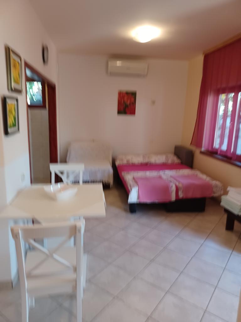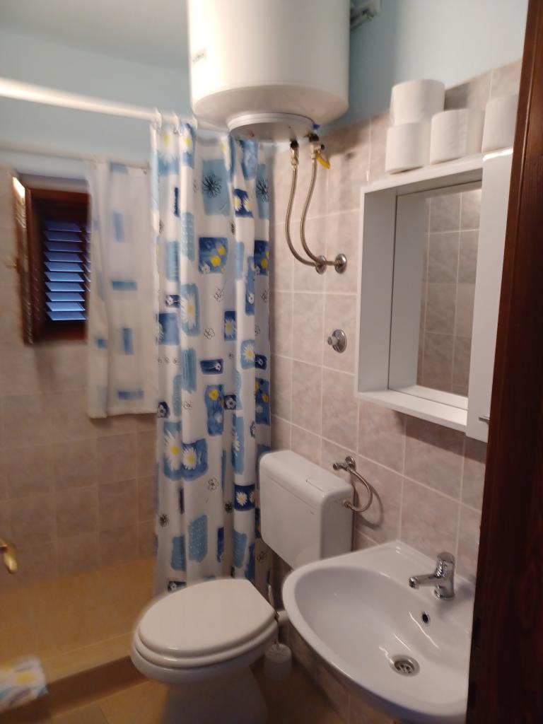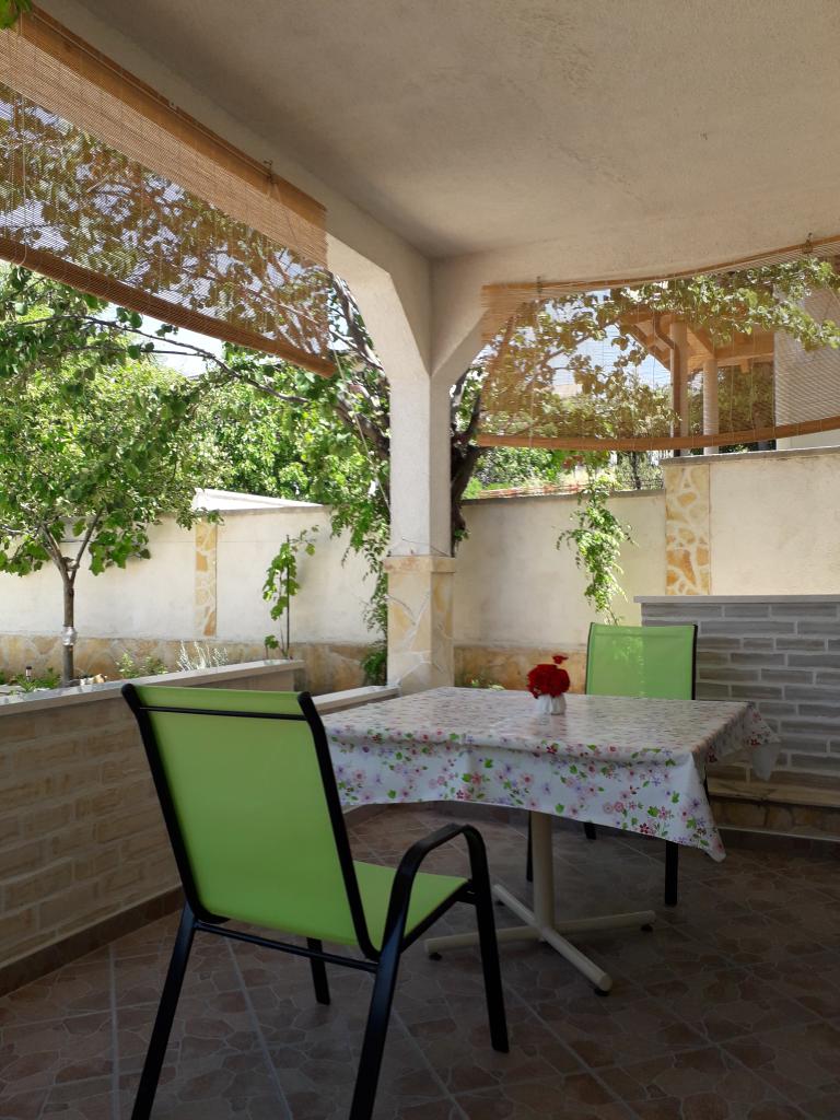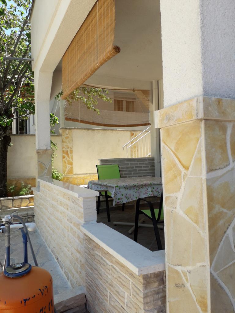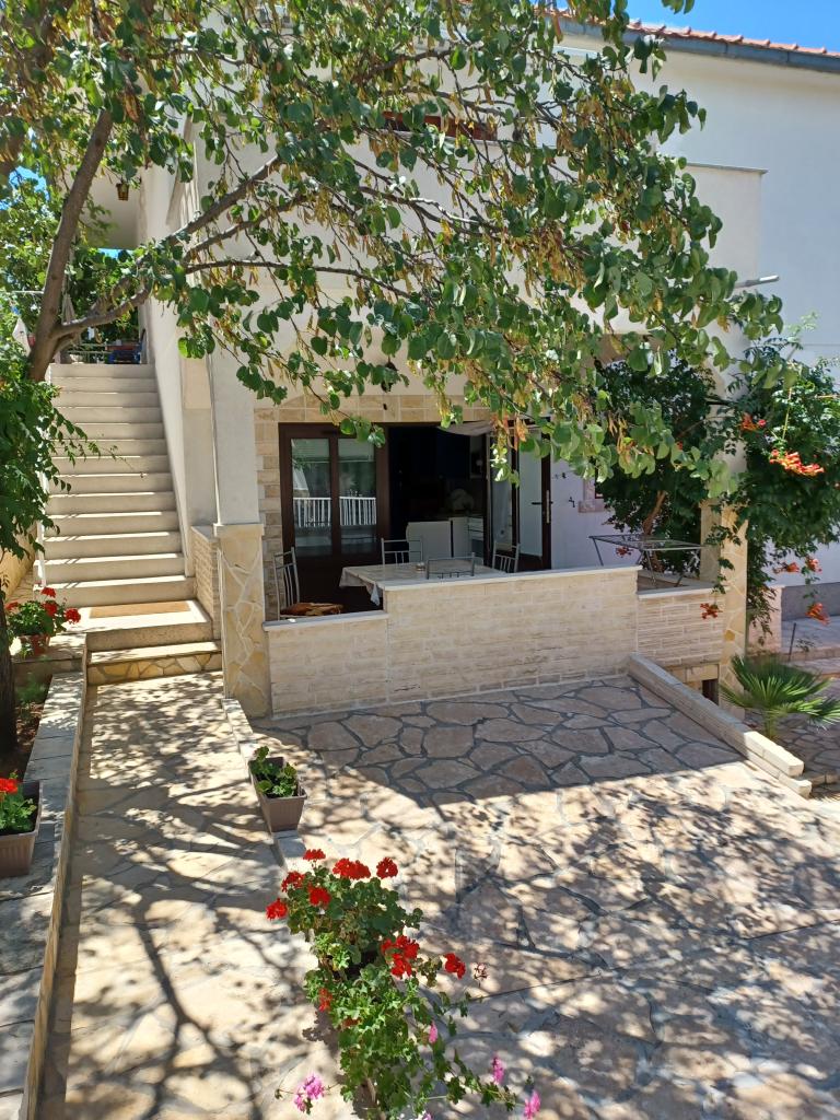 Nowo wyremontowany dom, dwa apartamenty, angielski ogród, ogród, ogród pełen zieleni, miejsce parkingowe na podwórku. Powierzchnia apartamentu wynosi 40 metrów kwadratowych. m. taras ma 20 metrów kwadratowych Każdy apartament ma osobne wejście i oddzielny zadaszony taras z widokiem na morze, Velebit, ogród i ulicę, Niebieskie mieszkanie: salon, sypialnia. kuchnia w salonie, łazienka z WC. Salon: podwójne łóżko oraz dodatkowe łóżko. Kuchnia, - w pełni wyposażona. Sypialnia, - ma dwa łóżka pojedyncze Dunja: salon, - podwójne łóżko oraz dodatkowe łóżko; Kuchnia, - oddzielona ekranem w pełni wyposażonym; Sypialnia, - podwójne łóżko dla dwóch osób. Oba apartamenty mają oddzielny prysznic na zewnątrz i wspólny grill, klimatyzację i nieograniczony dostęp do Internetu w ramach ceny.