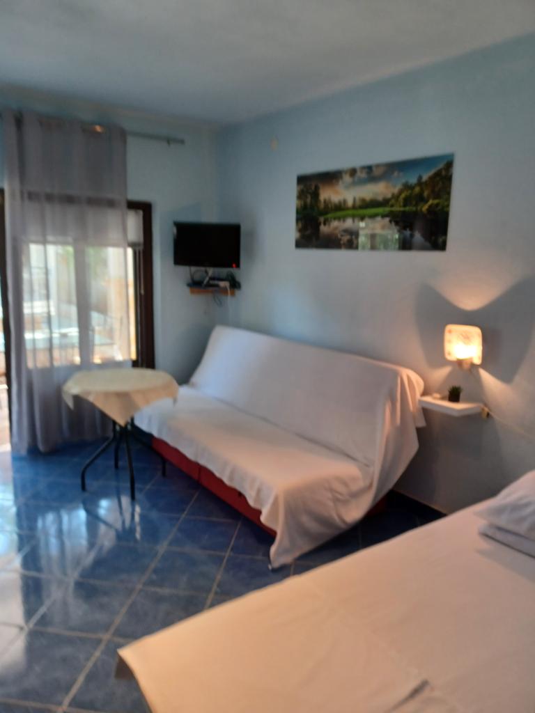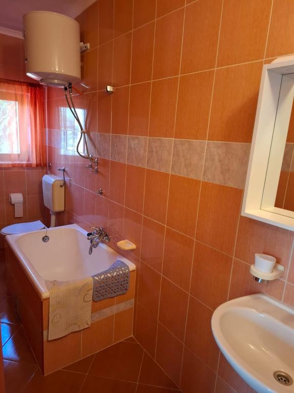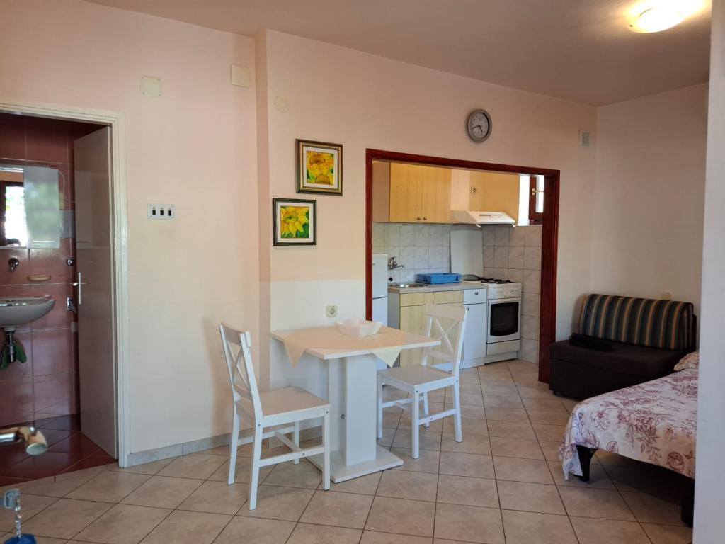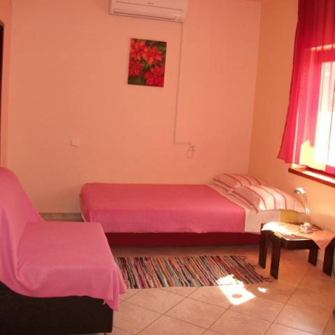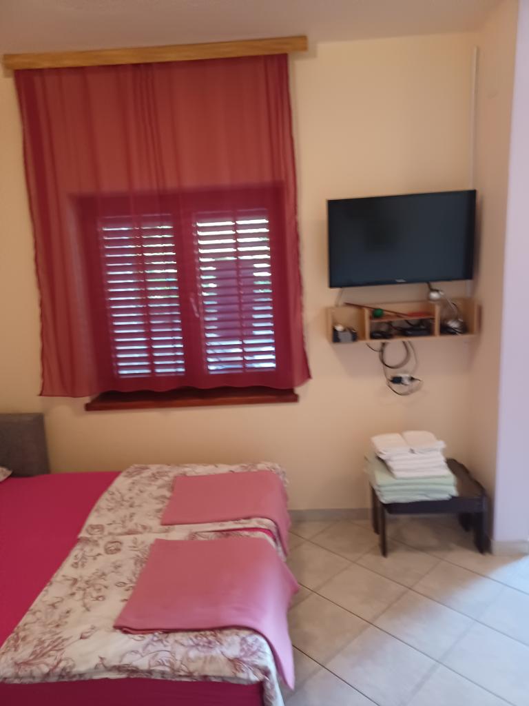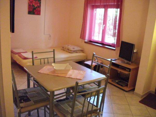 Nowo wyremontowany dom, dwa apartamenty, angielski ogród, ogród, ogród pełen zieleni, miejsce parkingowe na podwórku. Powierzchnia apartamentu wynosi 40 metrów kwadratowych. m. taras ma 20 metrów kwadratowych Każdy apartament ma osobne wejście i oddzielny zadaszony taras z widokiem na morze, Velebit, ogród i ulicę, Niebieskie mieszkanie: salon, sypialnia. kuchnia w salonie, łazienka z WC. Salon: podwójne łóżko oraz dodatkowe łóżko. Kuchnia, - w pełni wyposażona. Sypialnia, - ma dwa łóżka pojedyncze Dunja: salon, - podwójne łóżko oraz dodatkowe łóżko; Kuchnia, - oddzielona ekranem w pełni wyposażonym; Sypialnia, - podwójne łóżko dla dwóch osób. Oba apartamenty mają oddzielny prysznic na zewnątrz i wspólny grill, klimatyzację i nieograniczony dostęp do Internetu w ramach ceny.