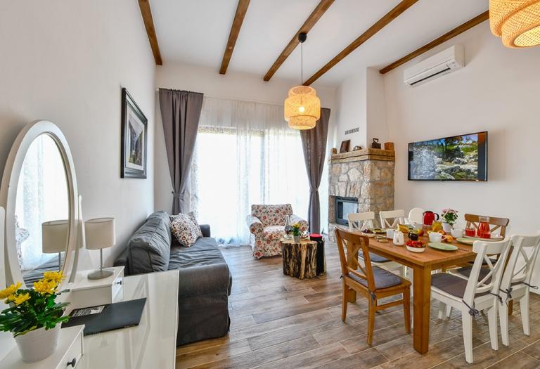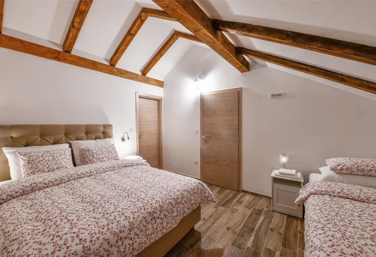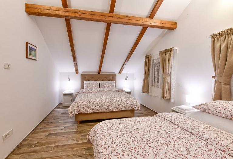 W dziewiczej przyrodzie, niemal w samym sercu Liki, w trzech „starych” lickich domach, z których każdy ma swoją historię, oferujemy tradycyjne elementy wyposażenia z nutą historii i starożytności, ale także luksus i wygodę, które są tak dziś niezbędne do odpoczynku i ucieczki od zabieganej, codzienności. Samo wyposażenie obiektów jest czymś, z czego jesteśmy niezwykle dumni i zawiera wszystko, co niezbędne, aby wakacje były kompletne i niezapomniane. Myślimy tu przede wszystkim o winiarni, tawernie, w której na życzenie gości przygotowywane są posiłki, krytym, krytym, podgrzewanym basenie, saunie, centralnym ogrzewaniu, busie do transferów, możliwości wynajmu off-roadu samochody, własny zadaszony parking, park dla dzieci, meble ogrodowe, ale także telewizor, internet, klimatyzatory, pralki i suszarki, zmywarki, grill, piec na gorące powietrze, suszarki do włosów, a także źródło wody pitnej, która sięga czasów monarchii austro-węgierskiej