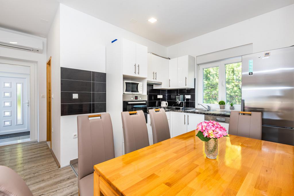 Nowoczesny i nowo wyremontowany dom, który zapewni idealne wakacje dla każdego gościa, który zdecyduje się odwiedzić Riwiera Makarska. Gradac to świetny wybór na rodzinne wakacje, zapewniając swoim gościom niezapomniane wrażenia, ciesząc się najpiękniejszym morzem i opalając się na pięknych plażach. Ze względu na doskonałą lokalizację Gradac jest ulubionym miejscem turystycznym, 100 km od Splitu i Dubrownika, idealną bazą wypadową na codzienne wycieczki i wizyty w najpiękniejszych chorwackich miastach. Nino znajduje się zaledwie 200 metrów od plaży lub 3 minuty spacerem od centrum miasta, 600 metrów od hotelu. Nasze zakwaterowanie krajobrazowe zapewni Ci wszystko, czego potrzebujesz na dłuższy pobyt, jeśli wybierzesz. Do wyposażenia domu należą: 3 sypialnie, 2 łazienki, kuchnia, salon, korytarz, przedpokój, 2 balkony, 1 taras z meblami towarzyszącymi, bezpłatna klimatyzacja, parking, Wi-Fi, smart TV, Netflix, zmywarka, pralka, sprzęt AGD ekspres do kawy, nadzór wideo, elektryczne szyby we wszystkich oknach ... witamy.