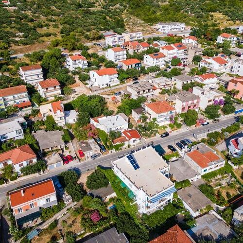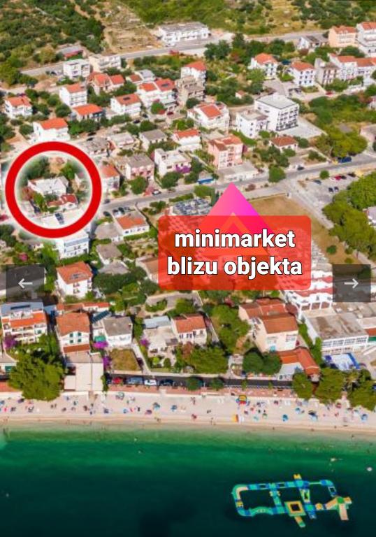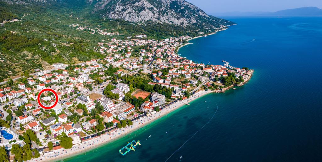 Obiekt położony jest w spokojnej części Gradac; do plaży ok. 100 m, do centrum ok. 400 m. Jednym z udogodnień jest to, że obok domu znajduje się sklep i piekarnia, a wzdłuż plaży cały szereg restauracji i kawiarni. Piękna plaża o długości około 3 km oferuje różnorodne obiekty rekreacyjne, sportowe i rozrywkowe oraz place zabaw dla dzieci (aquapark, minigolf, kort tenisowy, wypożyczalnia rowerów wodnych, skuterów wodnych i rowerów). W obiekcie znajduje się jeden apartament dla 4 osób i jedno mniejsze studio dla 2 osób, a także bezpłatny parking dla gości. Kwatery są w pełni wyposażone we wszystkie niezbędne udogodnienia, w tym telewizję, bezprzewodowy dostęp do Internetu i klimatyzację, które są wliczone w cenę zakwaterowania.