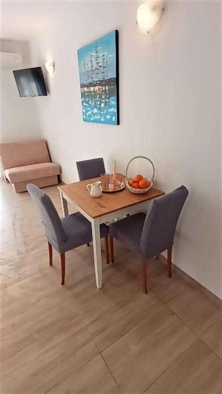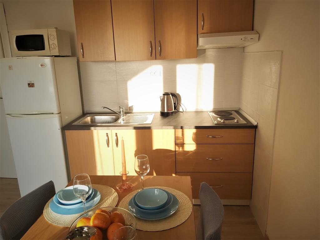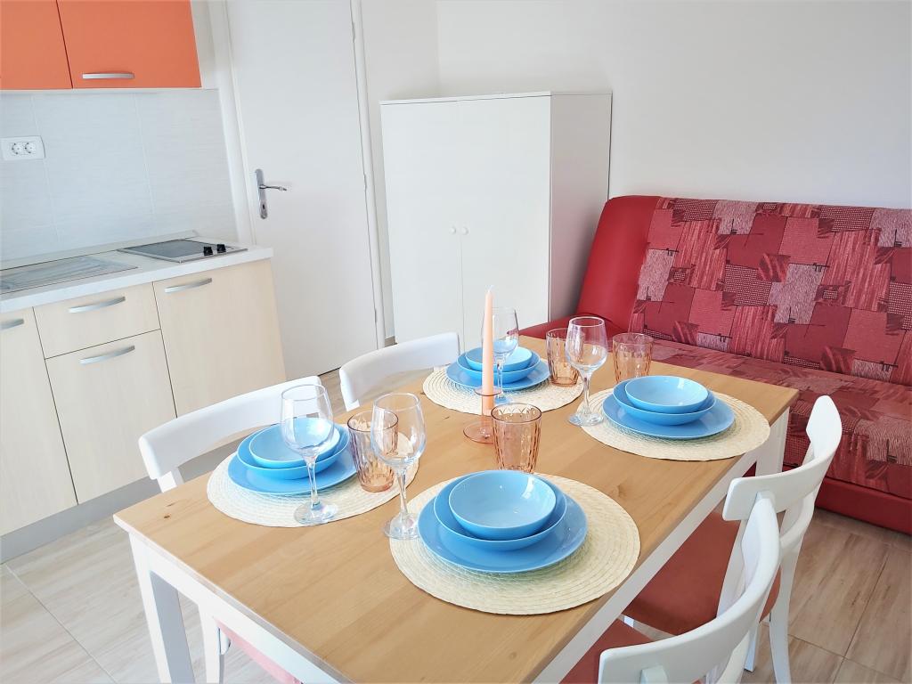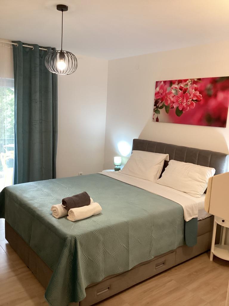 Mieszkaliśmy w apartamencie Ariana w sierpniu, byliśmy mile zaskoczeni pralką i klimatyzacją w obu pokojach. Balkon wygodny i zadaszony, widok na morze przyjemny, nie ma ruchu ulicznego, do sklepu nie jest nawet 100 metrów. Wszystko było super czyste i pachnące, pościel świeżo wyprana. Otrzymaliśmy także płyn do naczyń, gąbki, ściereczki, szampon, mydło. Często chodziliśmy do pizzerii Marmont, niedaleko domu na plaży, jest super. Gospodyni przyjęła nas, uprzejmie i dyskretnie, tak nam odpowiada.