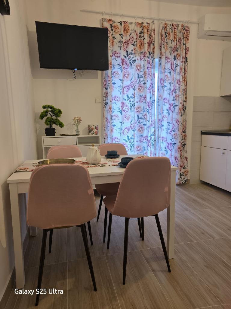 Mieszkaliśmy w apartamencie Ariany na drugim piętrze. Jest dość przestronny i wyposażony we wszystko, czego potrzebujesz, nawet pralkę. Oba pokoje są klimatyzowane, co zapewniło nam prywatność, ponieważ nie musieliśmy otwierać drzwi do pokoju. Balkon ma piękny widok na morze i góry, jest na tyle duży, że można na nim zjeść obiad, wychodzi na cichą stronę, po której nie przejeżdżają samochody. Parking jest bezpieczny na podwórku domu. Chętnie przyjedziemy ponownie.
