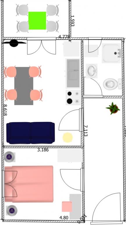Apartamenty znajdują się w domu liczącym łącznie 6 apartamentów. Obiekt znajduje się 150 metrów od plaży, a na terenie posesji znajduje się parking dla wszystkich samochodów. Wszystkie apartamenty posiadają zadaszone balkony o powierzchni 8 lub 16 metrów kwadratowych i są klimatyzowane we wszystkich pokojach. W apartamentach mogą przebywać wyłącznie goście zameldowani w apartamentach.