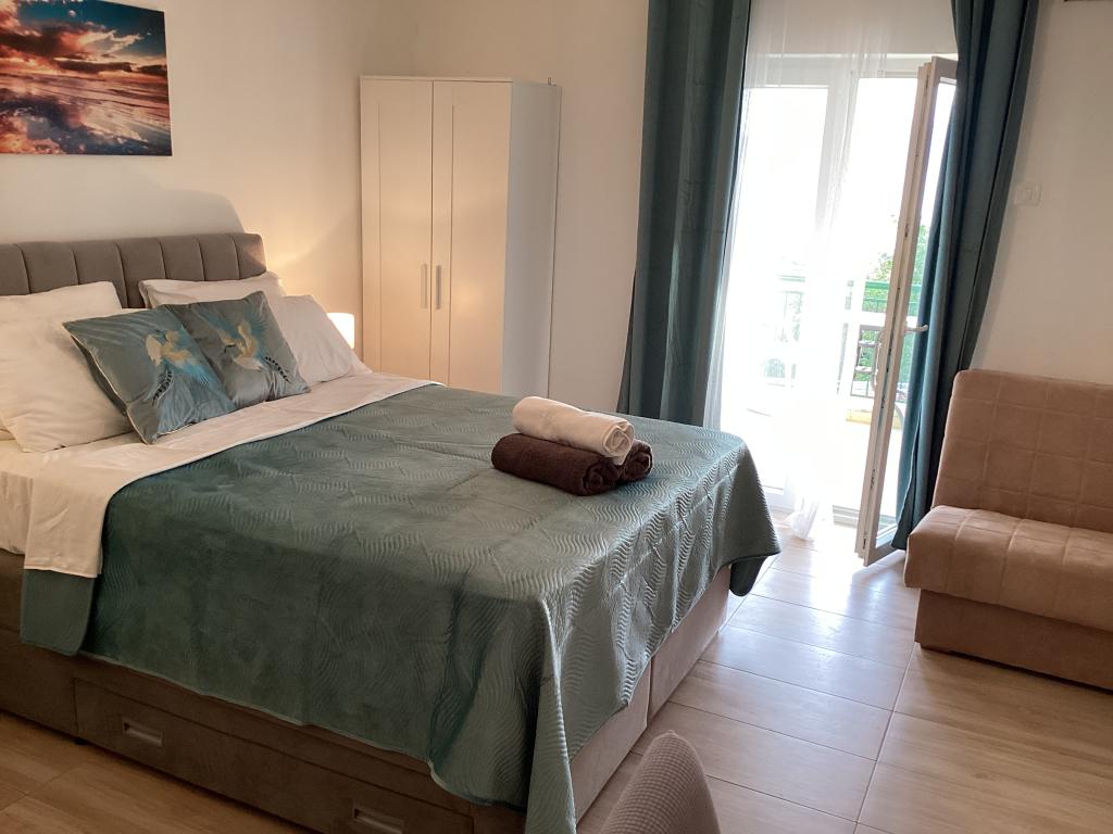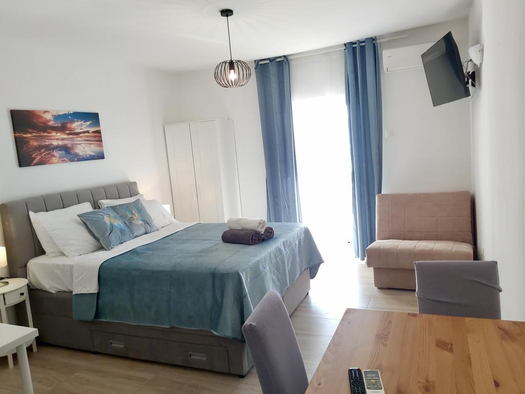 Piękny apartament dla dwojga, widoki do zapamiętania. Balkon, na którym spędziliśmy cudowne chwile oglądając zachód słońca nad pięknym Adriatykiem. Gospodarze są mili i pomocni, nie nachalni, co jest miłe.