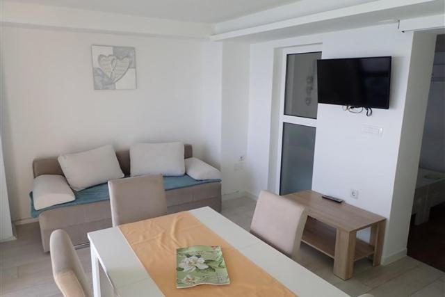 Ciesz się wakacjami w pierwszym rzędzie do morza, tuż przy głównej plaży i promenadzie. Nasza lokalizacja w samym centrum pozwala na pełen relaks bez konieczności korzystania z samochodu. Oferujemy: Apartament 3+1: Przestronny i wygodny dla rodzin. Studio 2+1: Funkcjonalne i idealne dla par. Wszystko na wyciągnięcie ręki (w promieniu 100 m): Restauracje i kawiarnie znajdują się tuż pod apartamentem, a sklepy i bankomaty są w bezpośrednim sąsiedztwie. Z domu można dojść pieszo na plażę i promenadę. Udogodnienia: Apartamenty są klimatyzowane, posiadają taras z widokiem na morze, telewizję satelitarną i bezpłatne Wi-Fi. Kuchnie wyposażone są w kuchenkę mikrofalową i czajnik. Ręczniki i papier toaletowy są zapewnione. Parking dla gości jest wliczony w cenę. Zarezerwuj pobyt w centrum wydarzeń i poznaj Gradac z szumem fal! Ekskluzywna korzyść w naszej restauracji: Jako nasi goście otrzymujesz 10% zniżki na lunch i kolację w naszej rodzinnej restauracji Marina. Ciesz się świeżymi lokalnymi specjałami w bardziej przystępnej cenie.