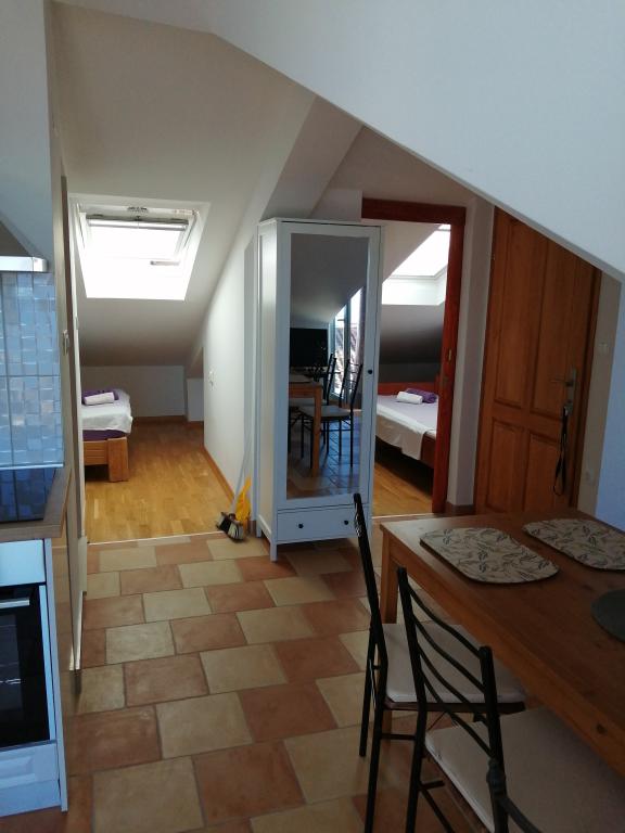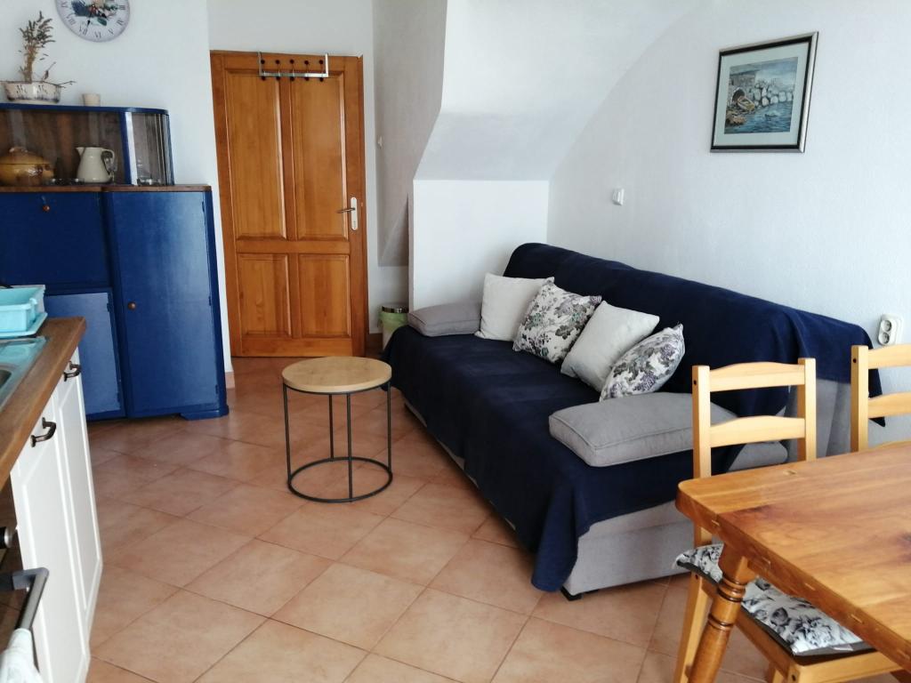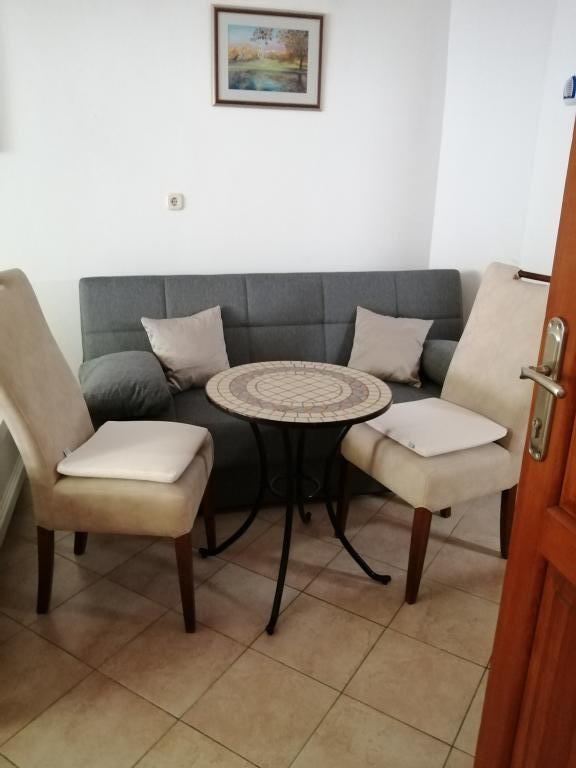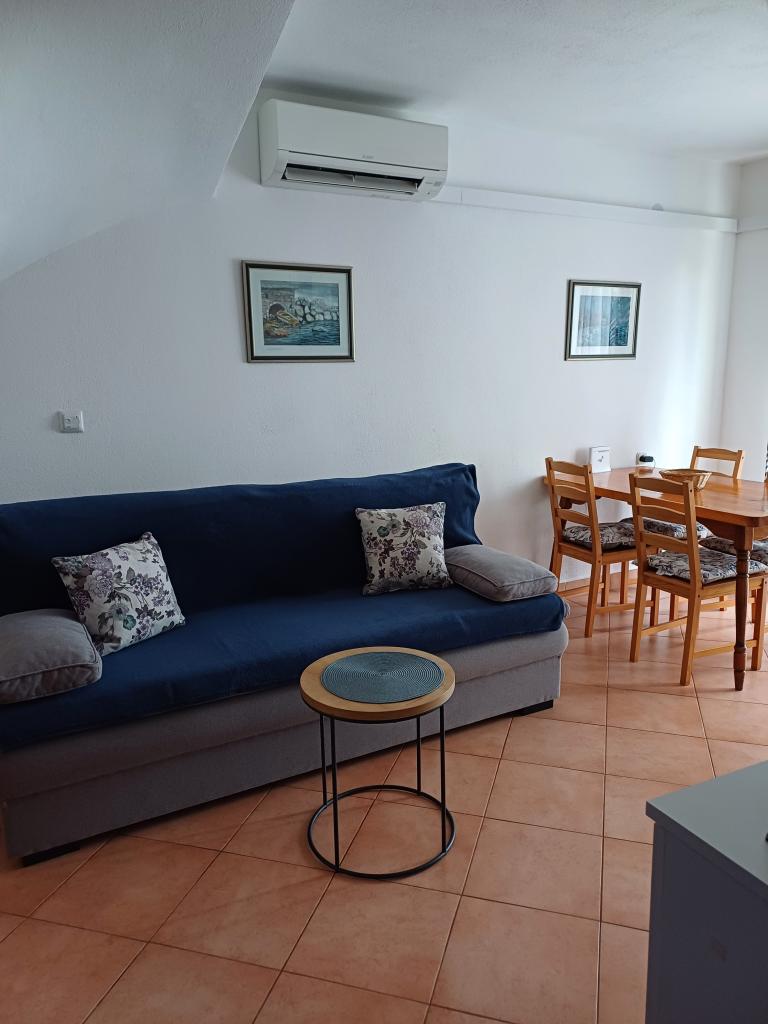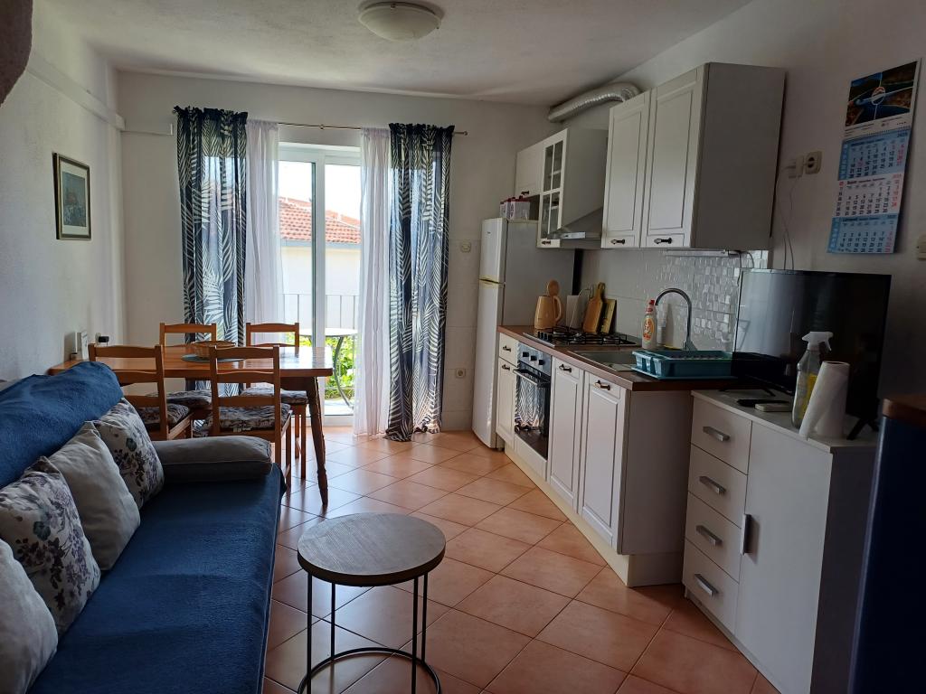 Apartament Lina to w pełni wyposażone mieszkanie w zacisznym miejscu blisko centrum. To jest 3 minuty spacerem do plaży i tyle samo do centrum. Znajduje się na pierwszym piętrze prywatnego domu i składa się z pokoju dziennego połączonego z kuchnią, jednej sypialni z podwójnym łóżkiem i jednej sypialni z 2 pojedynczymi łóżkami oraz łazienki. Posiada również balkon z widokiem na morze. Jest wyposażone we wszystkie podstawowe sprzęty AGD (lodówka, piekarnik, kuchenka) i obejmuje klimatyzację oraz telewizor i rozkładaną sofę w salonie. W cenie miejsce parkingowe 200 m od apartamentu, ale po przyjeździe w celu wyładowania bagażu można podjechać samochodem 30 m od apartamentu. Gospodarz znajduje się w tym samym miejscu i po przyjeździe powita gości, pokaże apartament i parking oraz przekaże klucze.