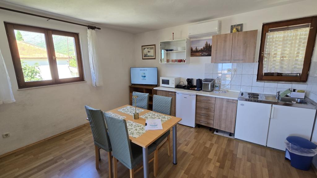 Apartamenty Lora to rodzinne apartamenty położone w spokojnej części Gradac, zaledwie 100 metrów od morza i kilka minut spacerem od centrum miasta. Obiekt składa się z pięciu nowocześnie urządzonych i w pełni wyposażonych apartamentów, dostosowanych do przyjemnego pobytu dla par i rodzin. Każdy apartament posiada balkon lub taras, a wnętrza zostały zaprojektowane z naciskiem na funkcjonalność i komfort. Goście mają do dyspozycji dodatkowe udogodnienia, takie jak rowery, deski SUP i sprzęt plażowy, co pozwala na aktywny i relaksujący wypoczynek bez dodatkowych kosztów. Dziedziniec obiektu jest zadbany i zadbany, przeznaczony do relaksu i wypoczynku na świeżym powietrzu, a cały obiekt zapewnia poczucie prywatności i domowej atmosfery. Lokalizacja obiektu umożliwia szybki i łatwy dostęp do głównej plaży, promenady, sklepów, piekarni, targu i restauracji, bez konieczności korzystania z samochodu. Apartamenty Lora to idealny wybór dla gości poszukujących spokojnego zakwaterowania, bliskości morza i centrum oraz indywidualnego podejścia gospodarza.