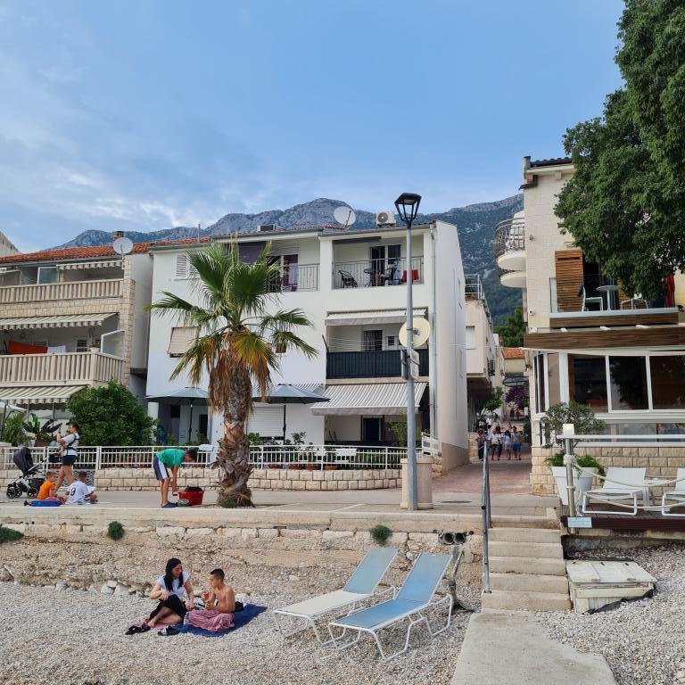 Przestronne iw pełni wyposażone apartamenty z widokiem na morze, w centrum Gradac, tuż przy wybrzeżu (morze). Przed domem znajduje się ogród z miejscem na popołudniowe przerwy, idealne na lekką herbatę i kawę lub poczytanie wybranej książki. Parking dla gości jest zapewniony. Oprócz standardowego wyposażenia w apartamencie znajduje się klimatyzacja, telewizja satelitarna, smart TV, darmowe Wi-Fi, a także wyposażenie dodatkowe takie jak kuchenka mikrofalowa, czajnik, a nawet suszarka do włosów. Bliskość sklepów, restauracji i bankomatów dodatkowo zapewnia gościom przyjemniejszy i bardziej relaksujący wypoczynek bez nerwowości, a wszystko to w promieniu maksymalnie 100 metrów. (wszystko jest "w zasięgu ręki gościa") Obiekt rządzi hasłem: "Jak w domu".