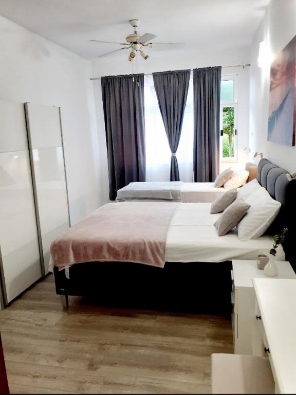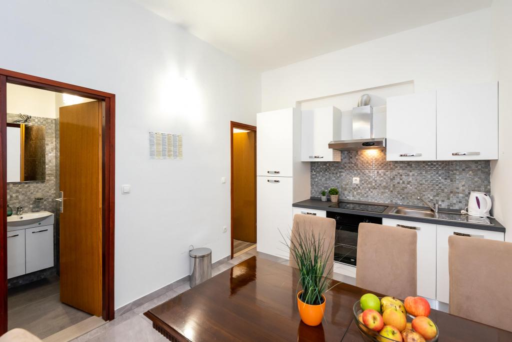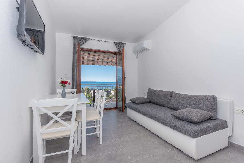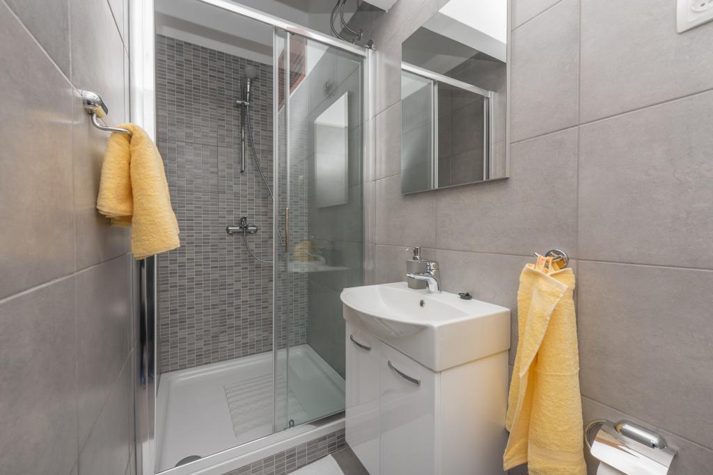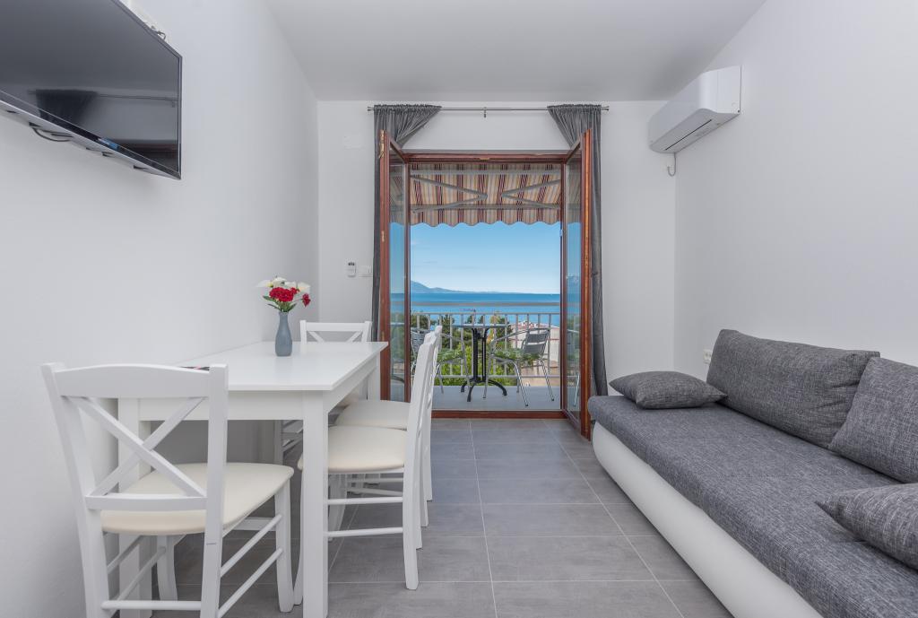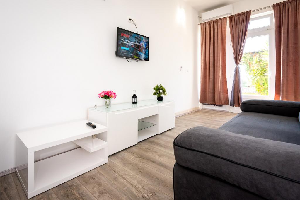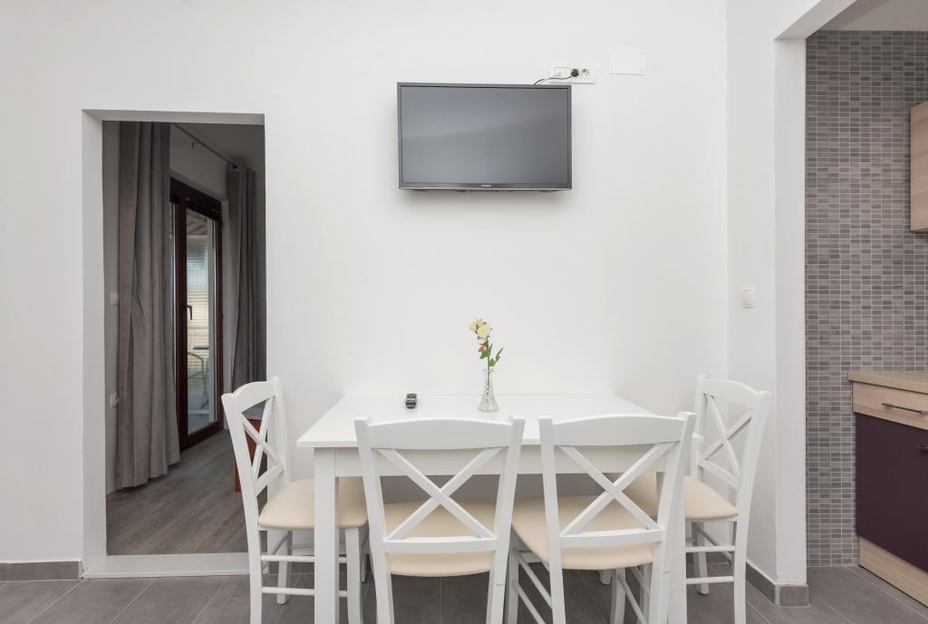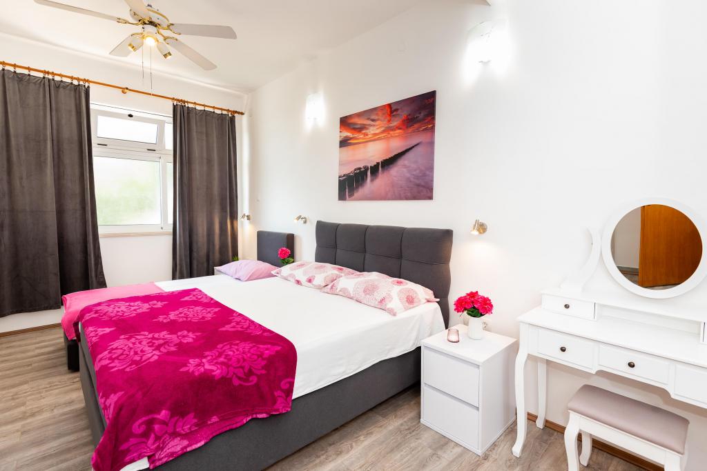 Wszystko zgodne z opisem, szczerze polecam, bardzo mili i mili gospodarze. Mieszkanie posiada 2 wyjścia na balkon, jedno z sypialni i drugie z salonu. Klimatyzator jest w salonie, działał dobrze, chłodzi przy temperaturach 36 stopni, ale spaliśmy przy otwartych oknach. Okolica jest bardzo cicha, jedynym hałasem są samochody odbierające rano śmieci i dzwony kościelne. Z balkonu roztacza się piękny widok na morze i wzgórze, na którym znajduje się kościół, nic nie zasłania tego widoku. Dużym atutem jest przestronna kabina prysznicowa. W kuchni znajdują się wszystkie podstawowe sprzęty. Jedyny mały mankament to to, że kratka wentylacyjna z łazienki wychodzi na korytarz prowadzący do innych mieszkań, ale w niczym to nie przeszkadza. Wszystko jest w porządku, nic nie jest uszkodzone. Wi-Fi - czasami były problemy, czasami zwalniało lub przestało działać, ale zawsze można było wykonać kopię zapasową zdjęć i filmów w ciągu nocy, ale nie nadaje się do pracy lub przesyłania strumieniowego (Netflix, Viaplay). Parking znajduje się na ulicy przed domem, wąski, standardowy dla tej części Chorwacji. Na plażę można dojść przez teren hotelu, szczególnie polecam przyjechać teraz, gdy hotele są remontowane i jest tam znacznie mniej ludzi.