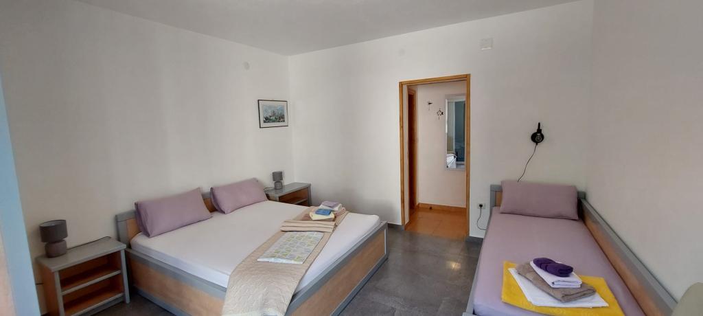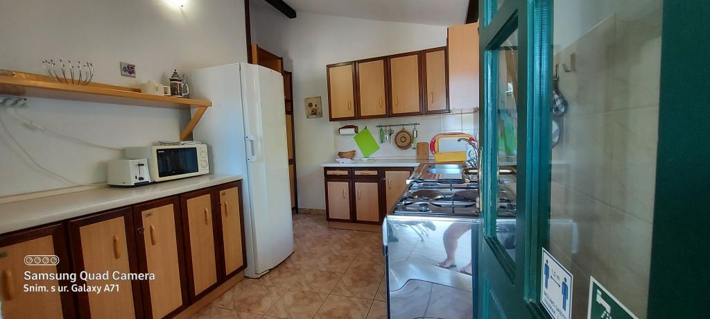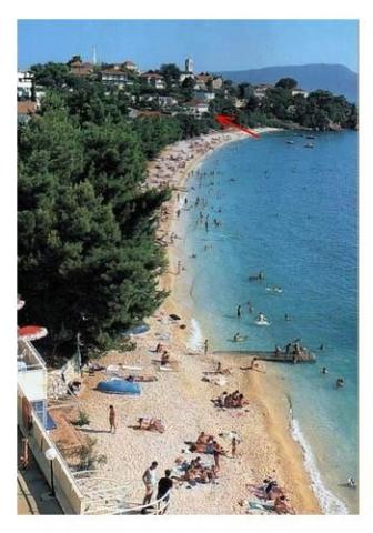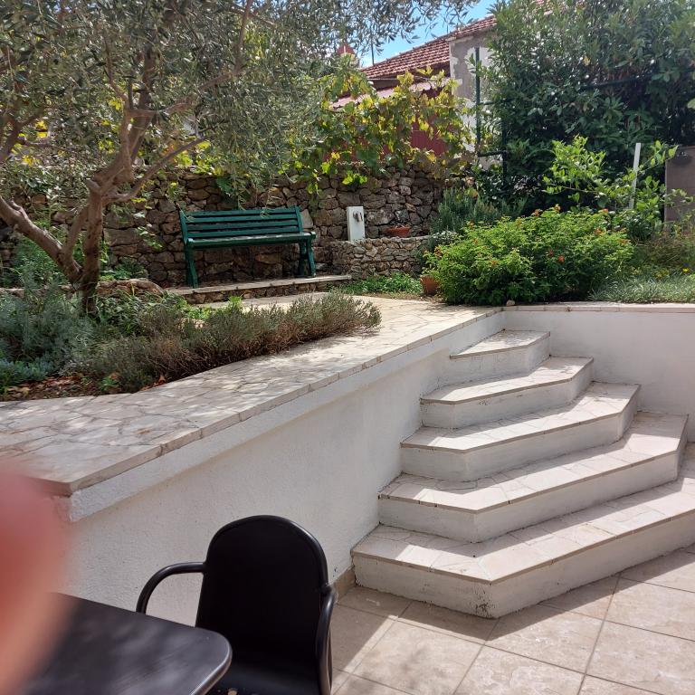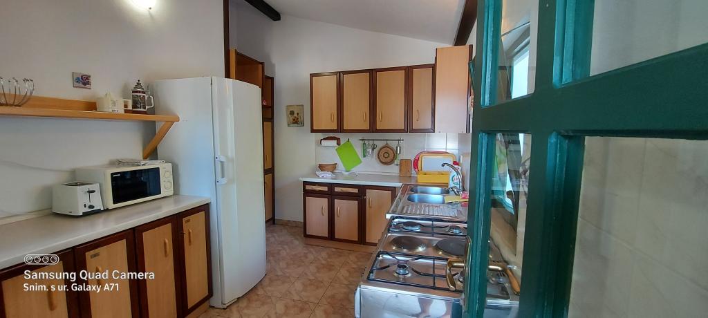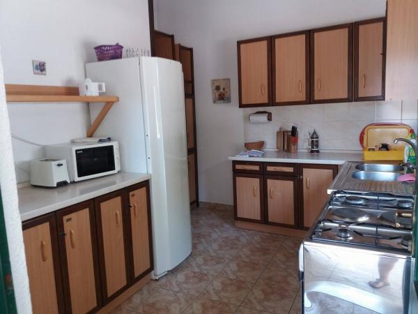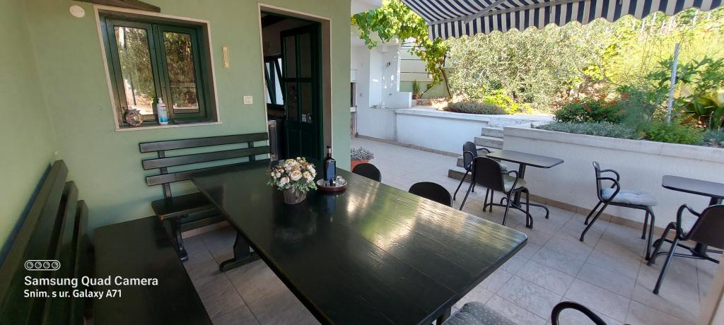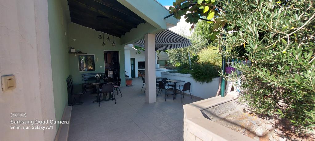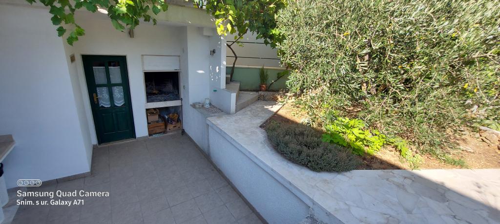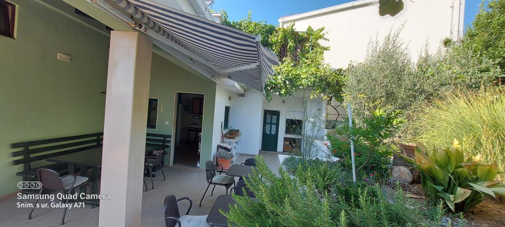Dom położony jest w cichej zatoce, w pierwszym rzędzie do morza, w pobliżu obiektów sportowych i rozrywkowych (kort tenisowy, minigolf, park wodny, wypożyczalnia skuterów wodnych, rowerów wodnych, rowerów). Otoczony jest ogrodem z winoroślą, kiwi, oliwkami i cytrynami, kwiatami i ziołami, które są dostępne dla gości. W ogrodzie znajduje się taras z pergolą, 50 m2, grill i prysznic na świeżym powietrzu. Na tym samym piętrze znajdują się 3 pokoje z łazienkami, klimatyzatorami, tarasami, lodówkami pokojowymi i sejfami (2 dwuosobowe i 1 trzyosobowy. Istnieje możliwość dostawki). Na dziedzińcu domu znajduje się w pełni wyposażona kuchnia z dwiema dużymi lodówkami, zamrażarką, kuchenką z piekarnikiem, kuchenką mikrofalową, 2 czajnikami, tosterem, ekspresem przelewowym i innymi niezbędnymi akcesoriami. Przed domem znajduje się otwarty parking, a także mamy własny parking w cieniu, który jest zamykany i zadaszony. Zwierzęta są akceptowane.