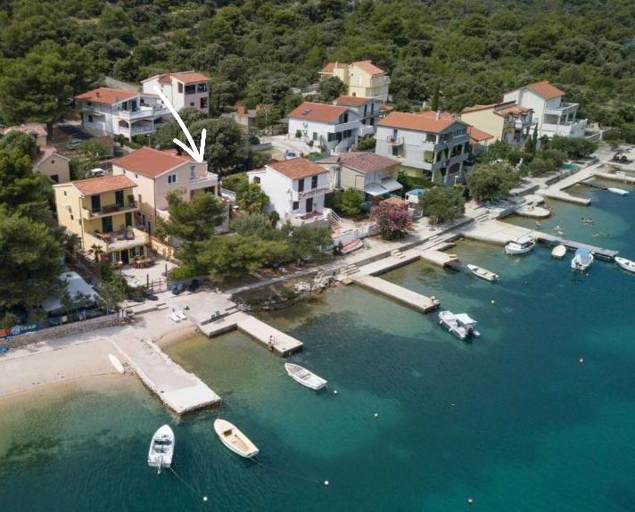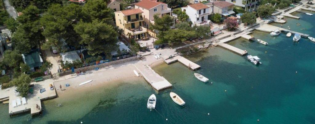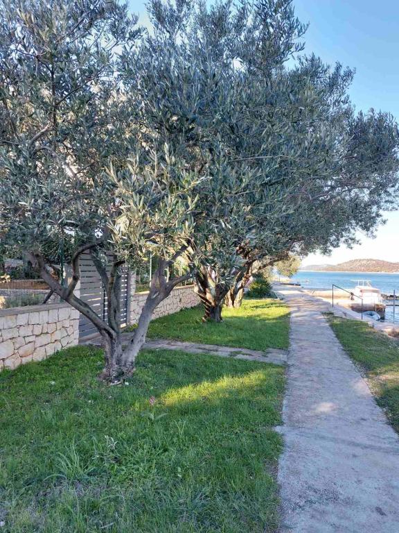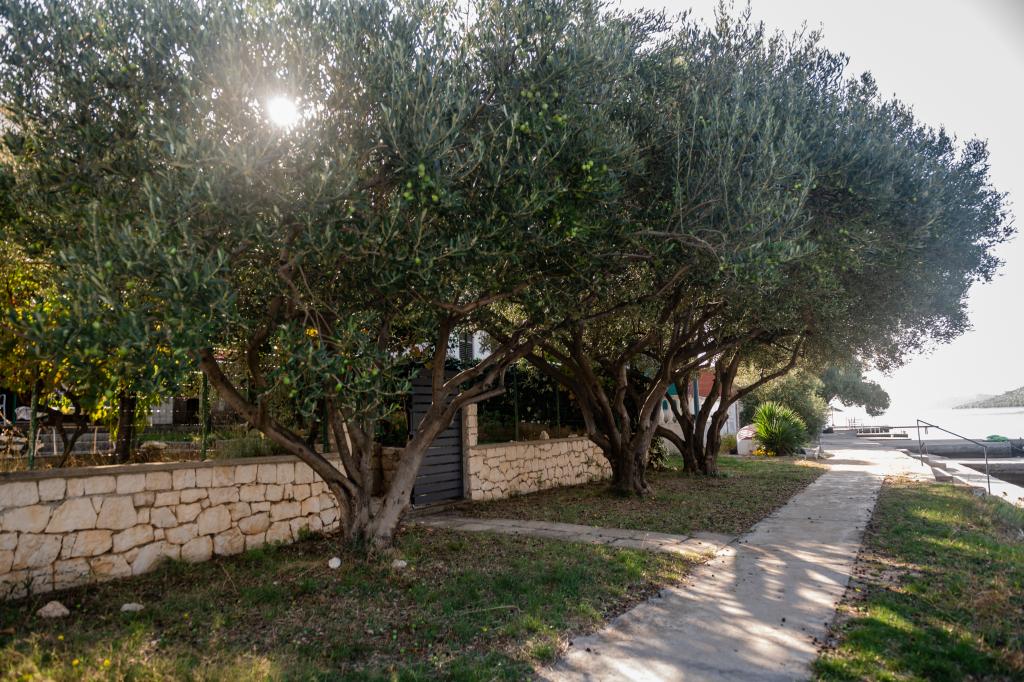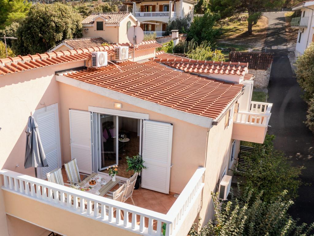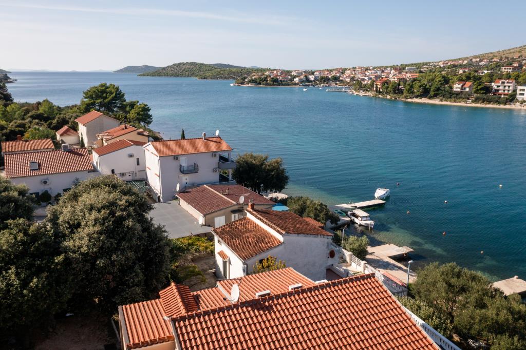 Nieruchomość położona jest w pierwszym rzędzie od morza, u podnóża wzgórza Jelinjak, na południowym brzegu długiej, pięknej zatoki, pomiędzy miejscowościami Grebaštica i Šparadići. Osady te połączone są główną drogą, a także dobrze utrzymaną ścieżką wzdłuż morza, idealną do spacerów, joggingu i jazdy na rowerze. Nieruchomość jest nowo wybudowana. Apartament posiada taras z widokiem na morze i miejscowość Grebaštica. Plaża jest betonowo-kamienista, z miejscami w cieniu drzew oliwnych.