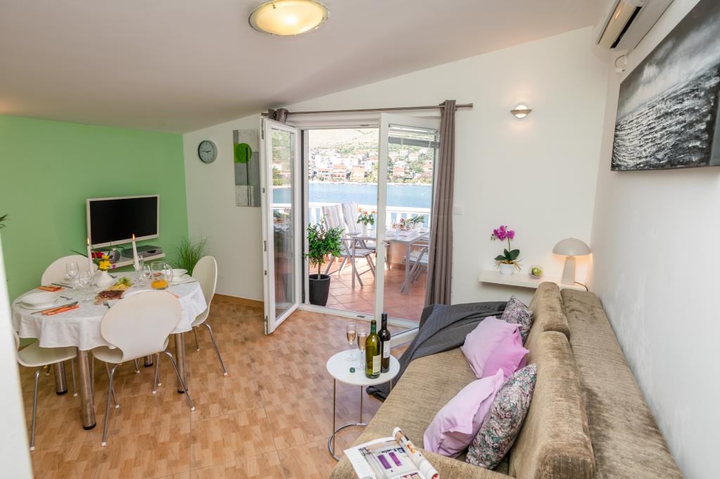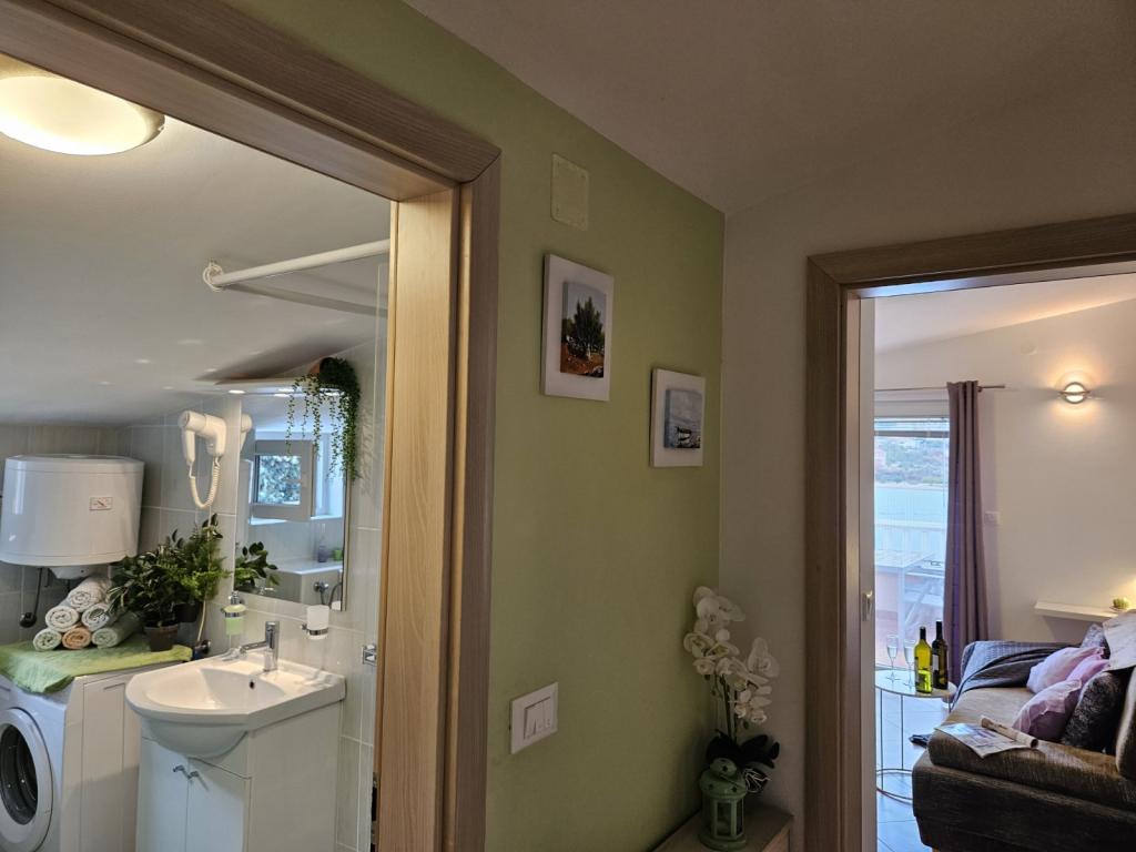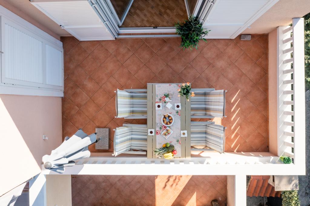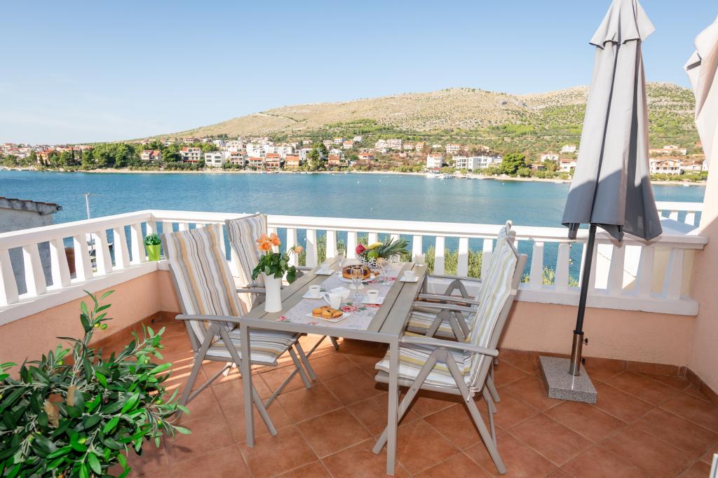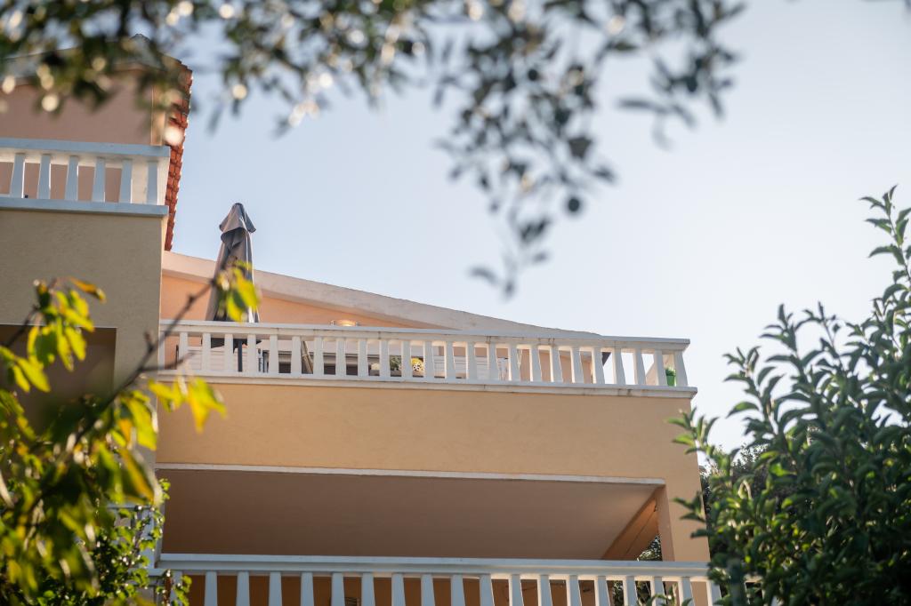 Nieruchomość położona jest w pierwszym rzędzie od morza, u podnóża wzgórza Jelinjak, na południowym brzegu długiej, pięknej zatoki, pomiędzy miejscowościami Grebaštica i Šparadići. Osady te połączone są główną drogą, a także dobrze utrzymaną ścieżką wzdłuż morza, idealną do spacerów, joggingu i jazdy na rowerze. Nieruchomość jest nowo wybudowana. Apartament posiada taras z widokiem na morze i miejscowość Grebaštica. Plaża jest betonowo-kamienista, z miejscami w cieniu drzew oliwnych.