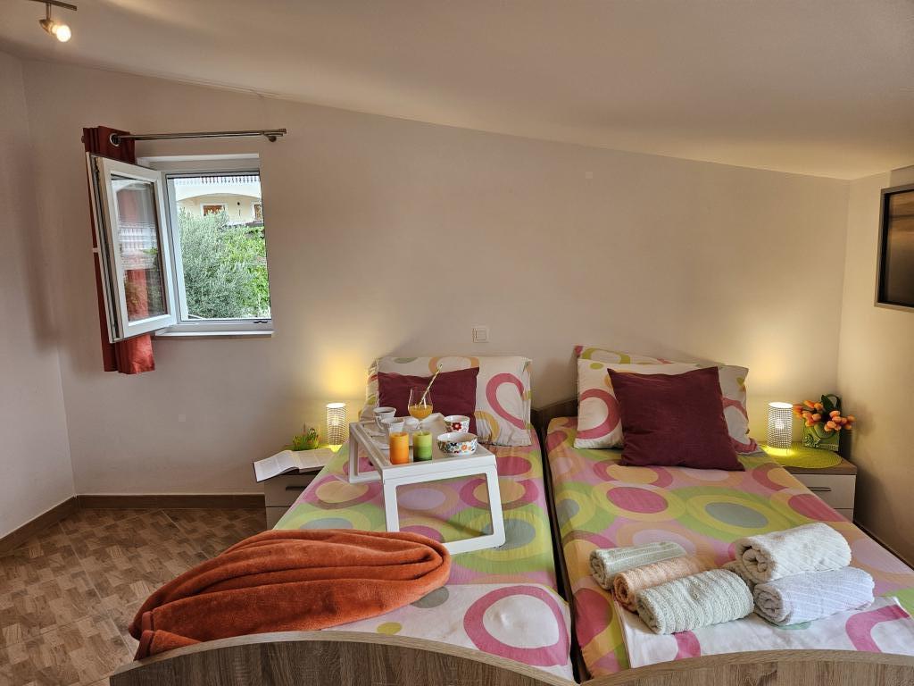 Opłata nie wliczone w cenę.Do dyspozycji gości apartamentu jest zmywarka i pralka. Dostępne jest miejsce do cumowania łodzi i miejsce na przyczepę kempingową, a także parking dla samochodu. Usługi te są bezpłatne. Do dyspozycji gości apartamentu jest łóżeczko dziecięce, parasole i leżaki. Na dziedzińcu domu znajduje się miejsce na grilla. W apartamencie dostępny jest bezpłatny internet (Wi-Fi). Ze względu na odległość od głównej drogi, goście apartamentu nie muszą martwić się o bezpieczeństwo swoich dzieci. W godzinach porannych istnieje możliwość zakupu podstawowych produktów spożywczych w bezpośrednim sąsiedztwie apartamentu, korzystając z autobusu. Zdecydowanie polecamy widok na cały archipelag ze szczytu wzgórza Jelinjak, na które można dojechać samochodem lub rowerem. W pobliżu znajdują się również dwa parki narodowe: Krka i Kornati. Zapraszamy!
