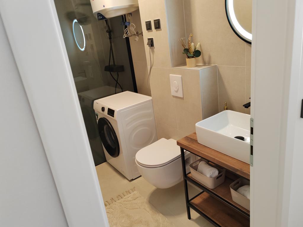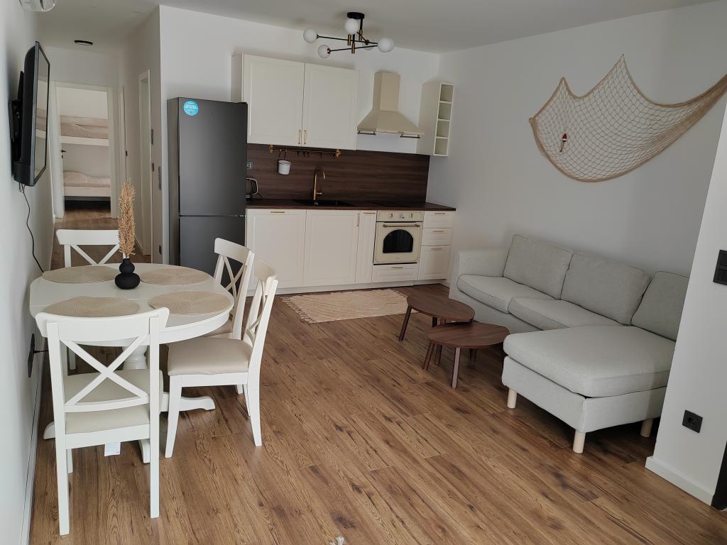 W pełni umeblowane mieszkanie w nowym budynku, zaledwie 20 m od plaży. Znajdujemy się 5 minut spacerem od centrum. Blisko do sklepów, restauracji i kawiarni. Na plaży bar plażowy z leżakami, naturalnym cieniem i aquaparkiem. Obiekt posiada własny parking tuż przed tarasem.