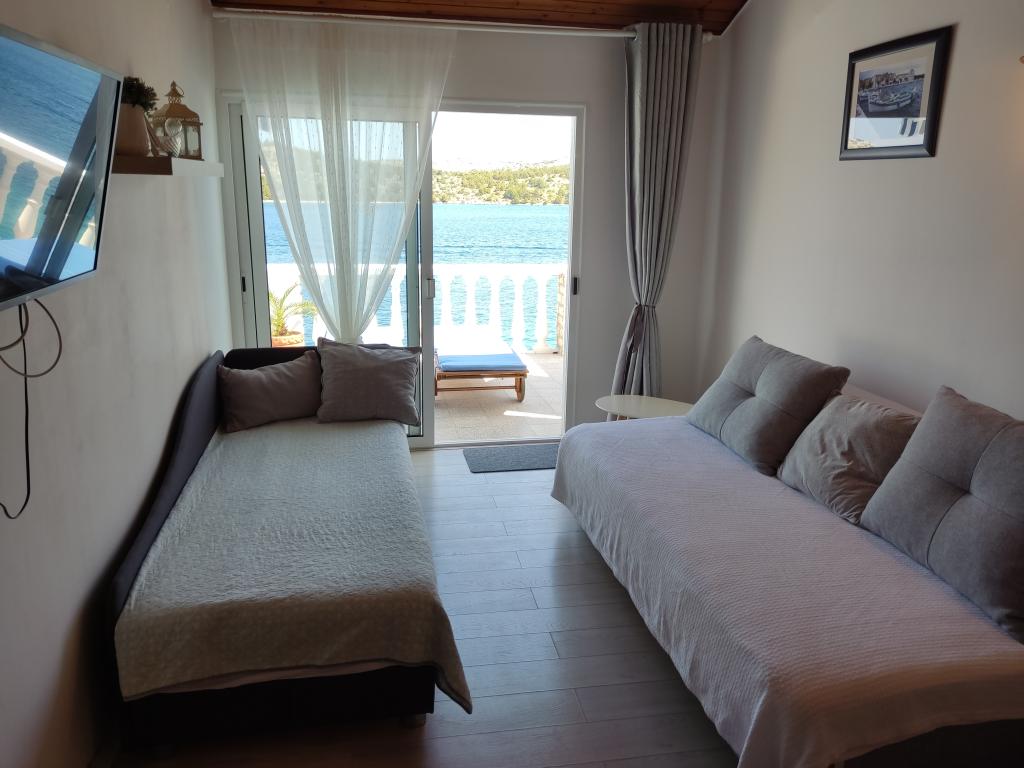 Do wynajęcia cały dom z trzema apartamentami, idealny dla trzech rodzin i grup do 12 osób. Dom położony jest w urokliwej okolicy, 7 metrów od plaży, w spokojnej miejscowości turystycznej Šparadići. Dwa apartamenty posiadają przestronne tarasy z pięknym widokiem na morze, a dolny apartament posiada ogrodzony ogród. Do dyspozycji Gości jest również duży taras nad morzem z grillem i dwoma stołami ogrodowymi, gdzie goście mogą spędzać czas w cieniu figowca i winorośli. Właściciele nie mieszkają w domu. Wszystkie apartamenty wyposażone są w klimatyzację, bezpłatny parking, telewizor, Wi-Fi, bezpłatne leżaki i parasole na plaży i tarasach. Możliwość cumowania łodzi przed domem. Idealne miejsce na rodzinne wakacje. Zapraszamy!