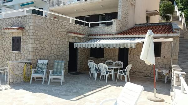 Dom nad morzem z nabrzeżem i pięknymi dużymi kamiennymi tarasami, na których goście lubią nocować.